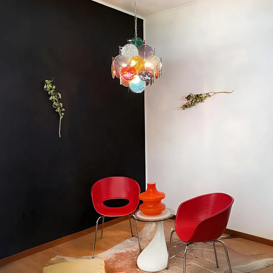 Vintage Murano Orange Brown Transparent Disc Chandelier