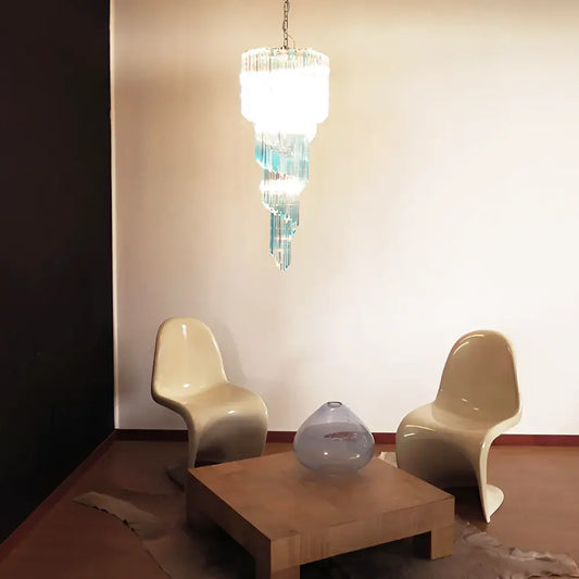 Murano Spiral Transparent Blue Prism Glass Chandelier