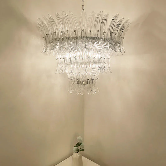 Palm Leaves Murano Transparent Glass Chandelier