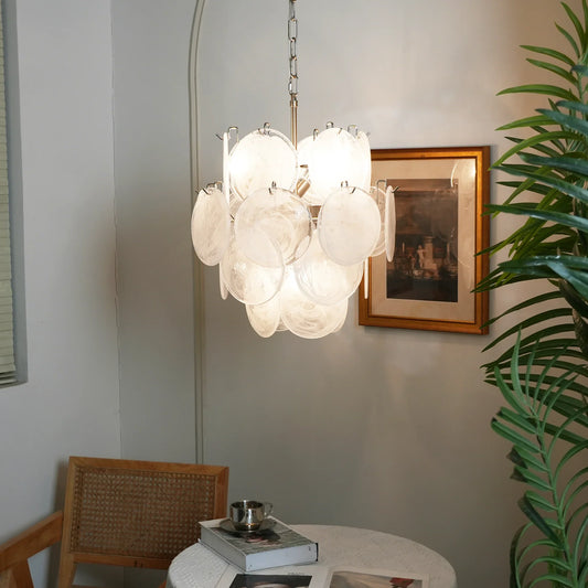 Vintage Murano White Glass Disks Chandelier