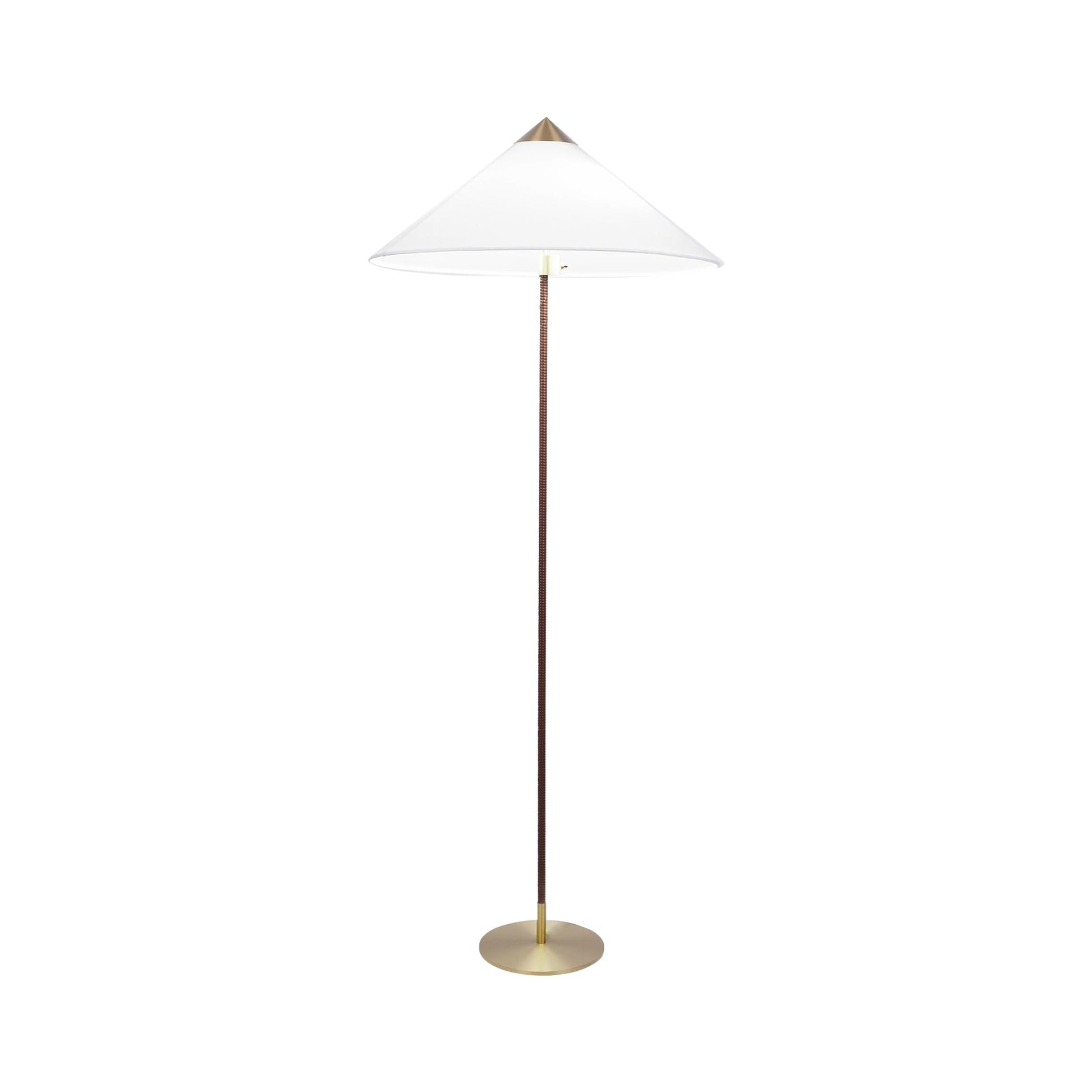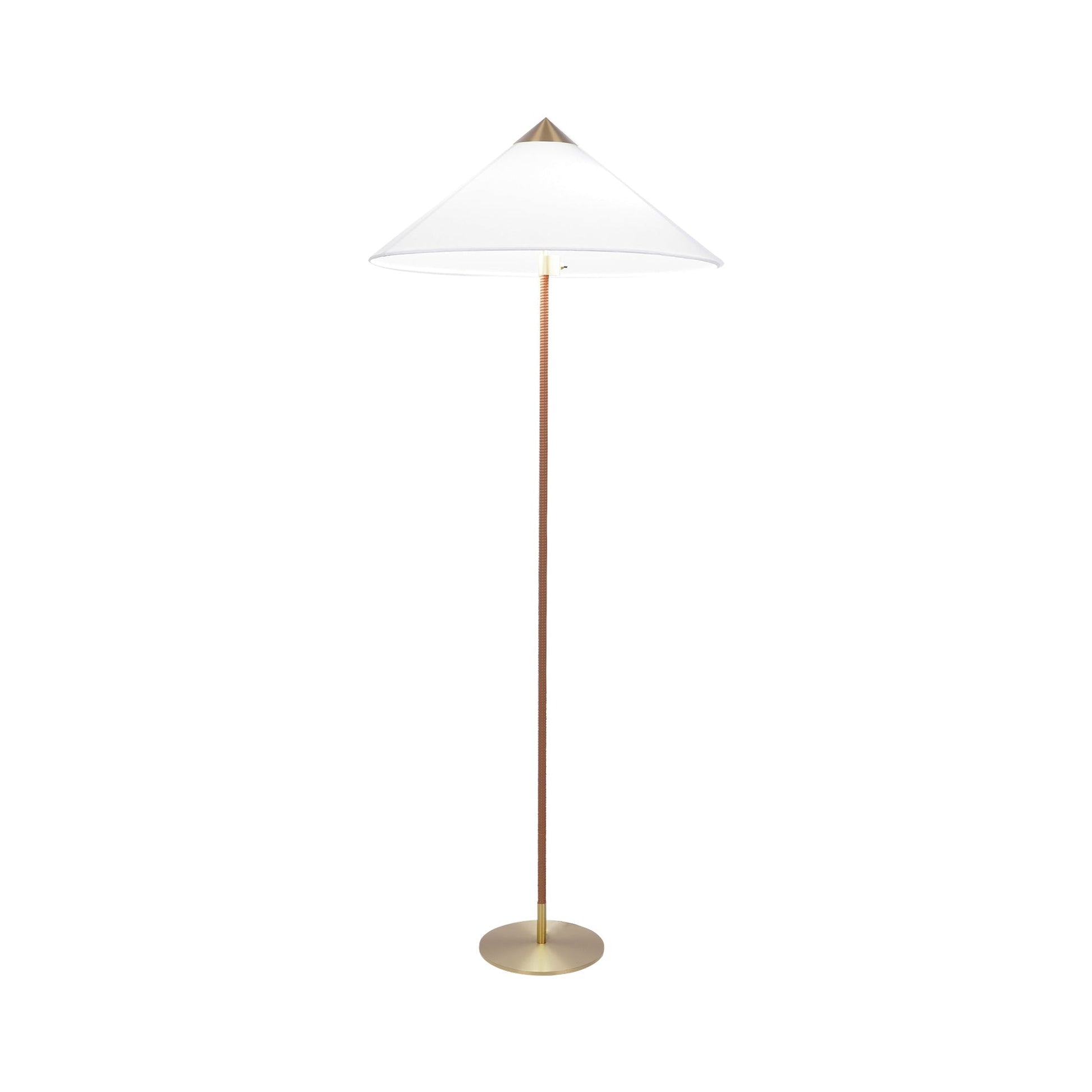Characterized by its elegant and airy lampshade and rattan-covered stem. the 9602 Floor Lamp shows the designer's limitless imagination and unparalleled ability to create designs of enduring beauty. Adding a playful. exuberant quality to the top. balanced by the more static form of the base. the 9602 Floor Lamp is perfectly suited for creating a gentle ambient light in the domestic living room.