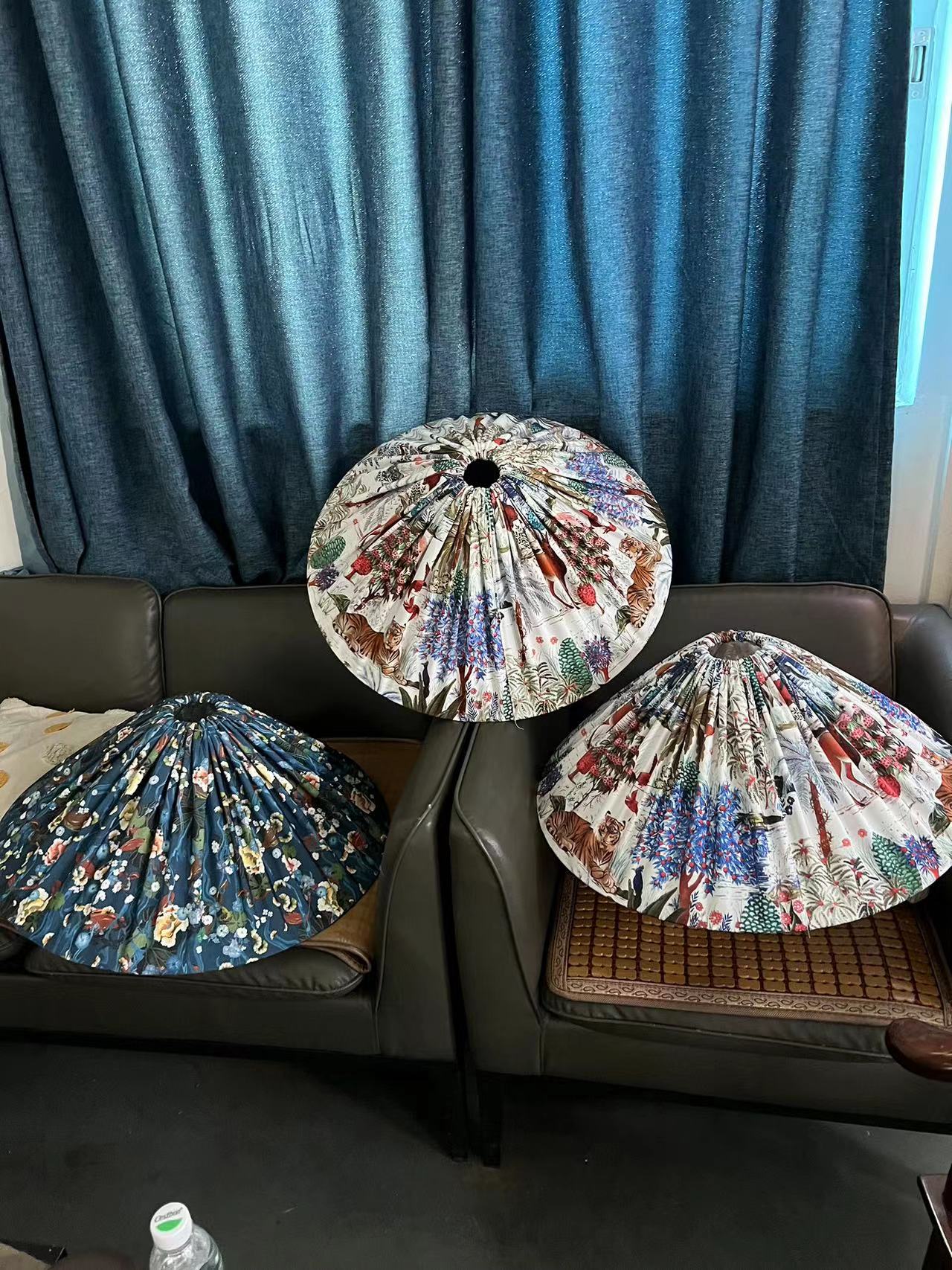 Lampshade Finish: White fabric. Natural rattan. Printed fabric.