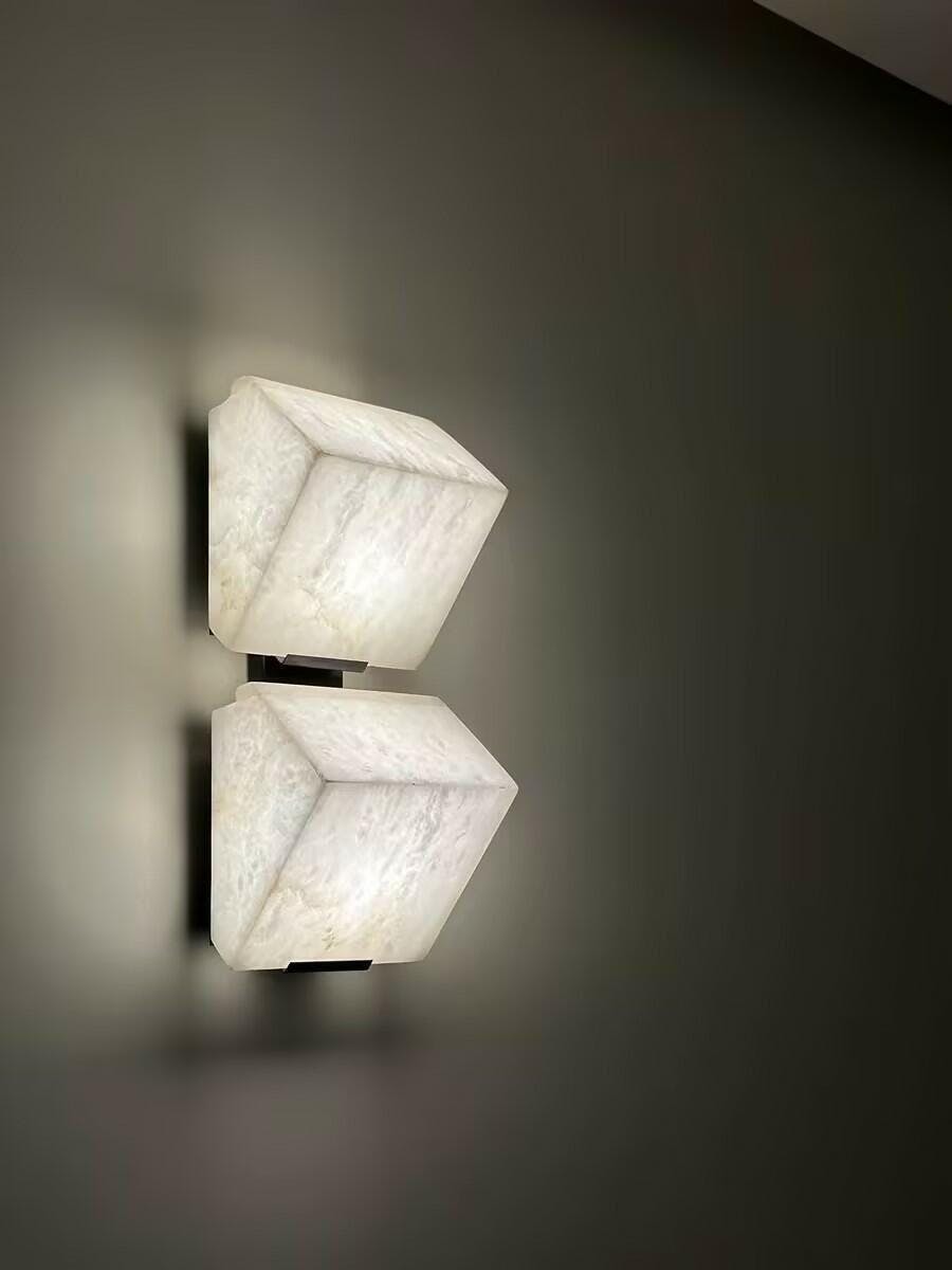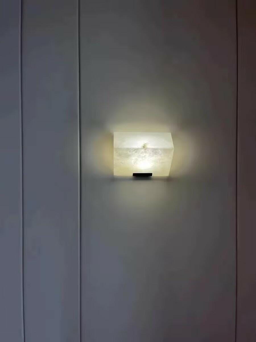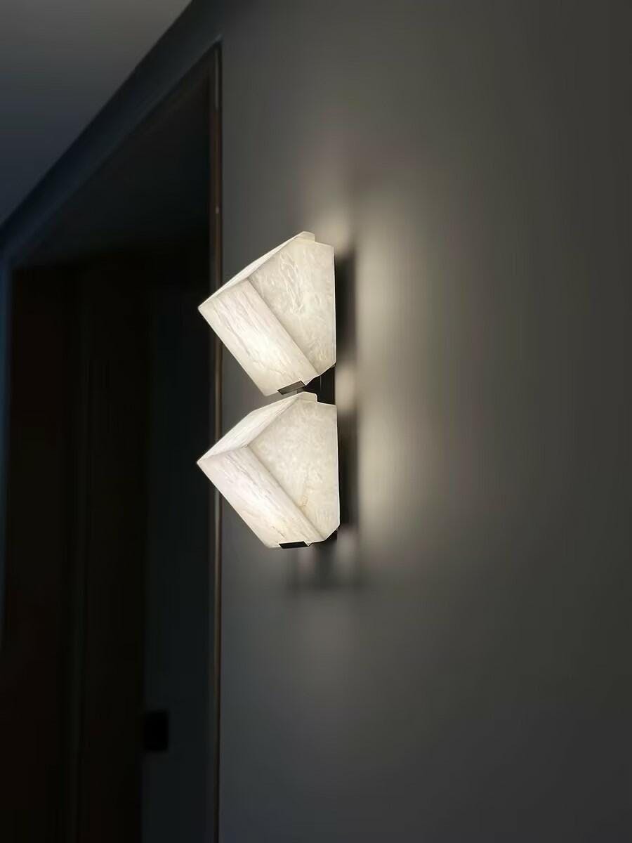 The beauty of the natural alabaster really stands out when the lights are turned on. It creates a warm, inviting glow that highlights the unique snowflake patterns in the stone. Each sconce is a work of art in its own right, and together, they bring a sophisticated elegance to my room.