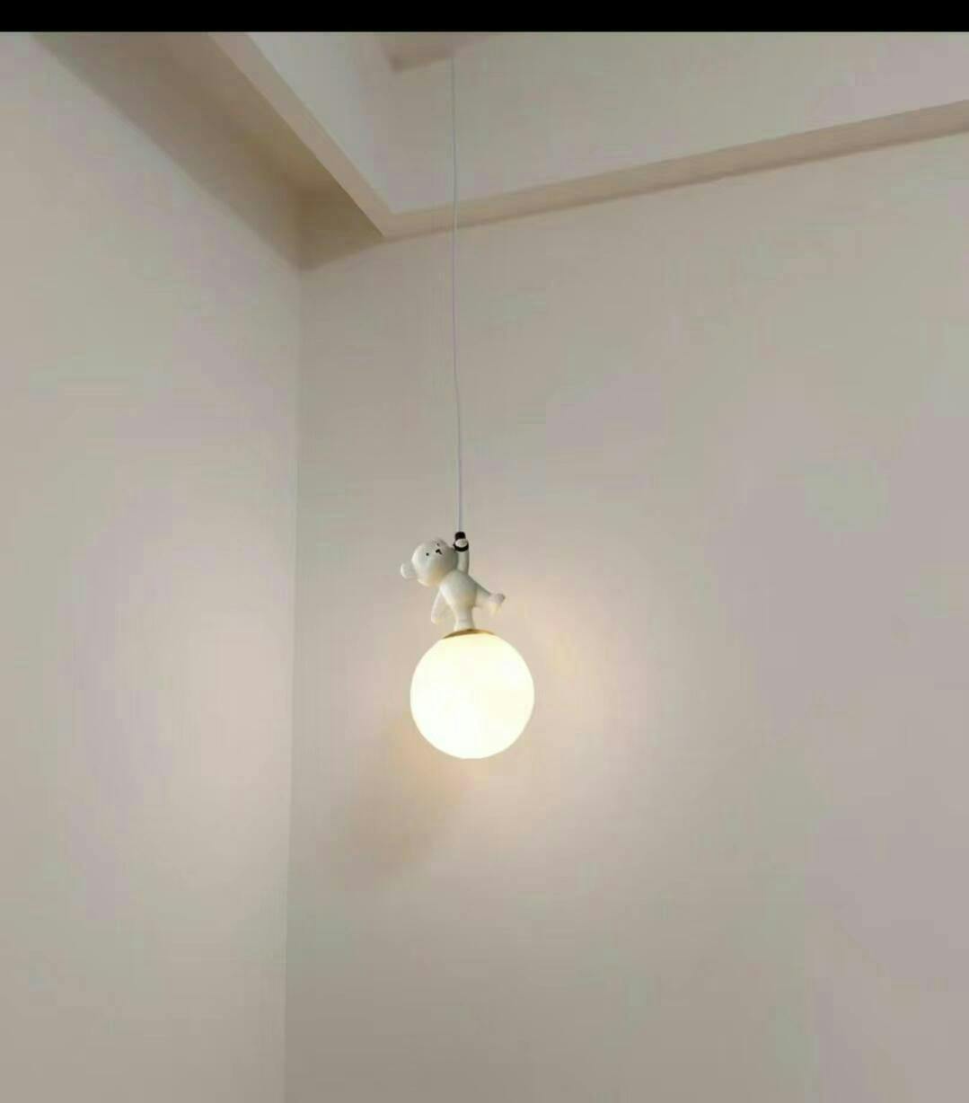 This Animal and Moon Pendant Light is the perfect addition to any child's bedroom. Crafted from both resin and iron. this stylish light fixture features a 3D-printed bear and moon design. creating a soft. inviting atmosphere. Enjoy a gentle. illuminated ambiance with this unique piece.