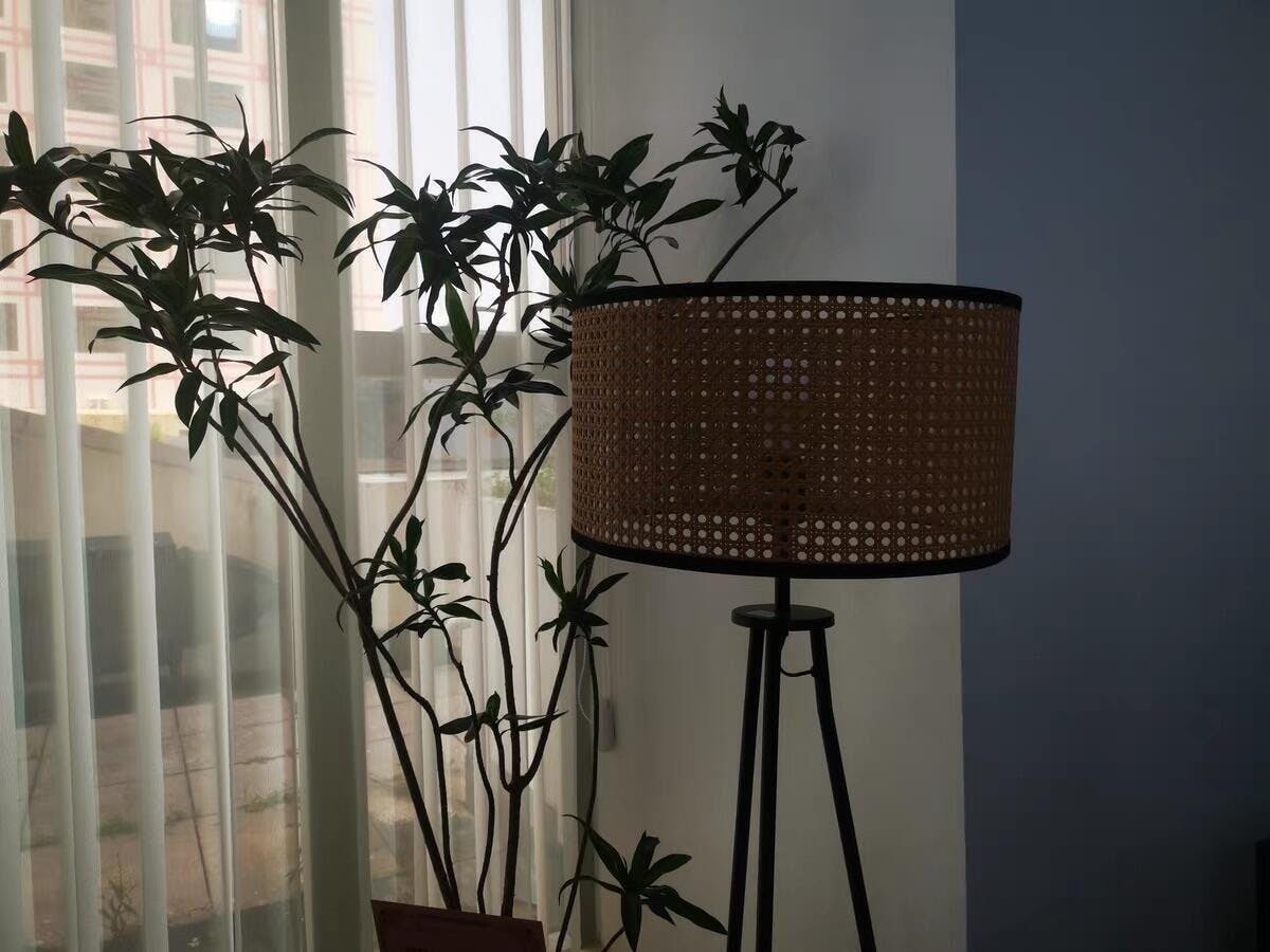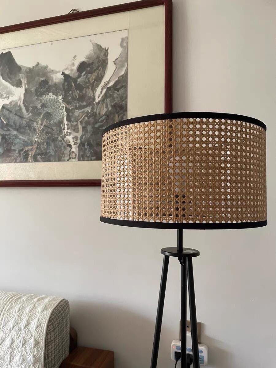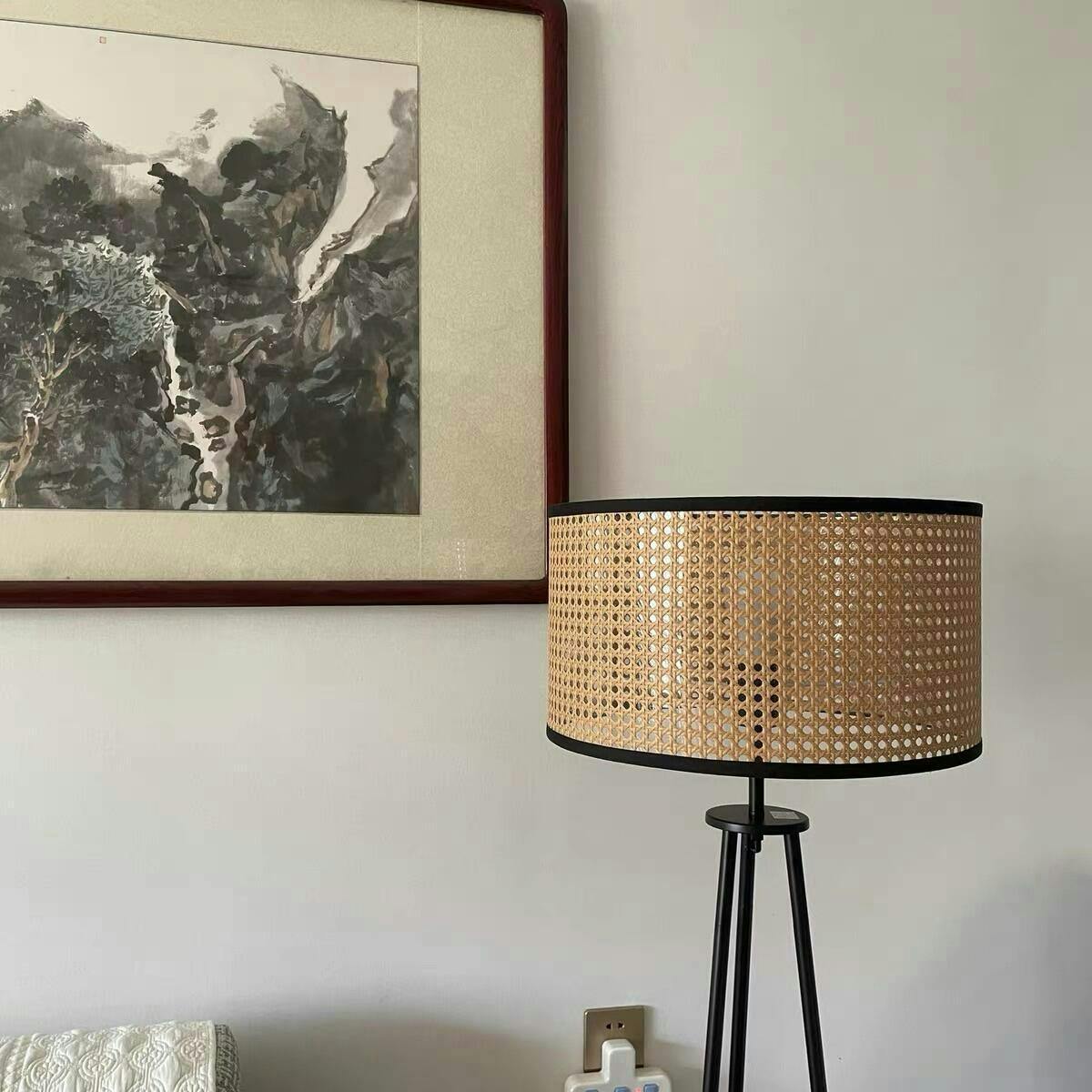The Aubrey Floor Lamp is expertly designed with a natural color bamboo shade and black edge detailing. It includes three sturdy black-finished metal legs for a modern yet timeless look. Enjoy bright. warm lighting in any room.