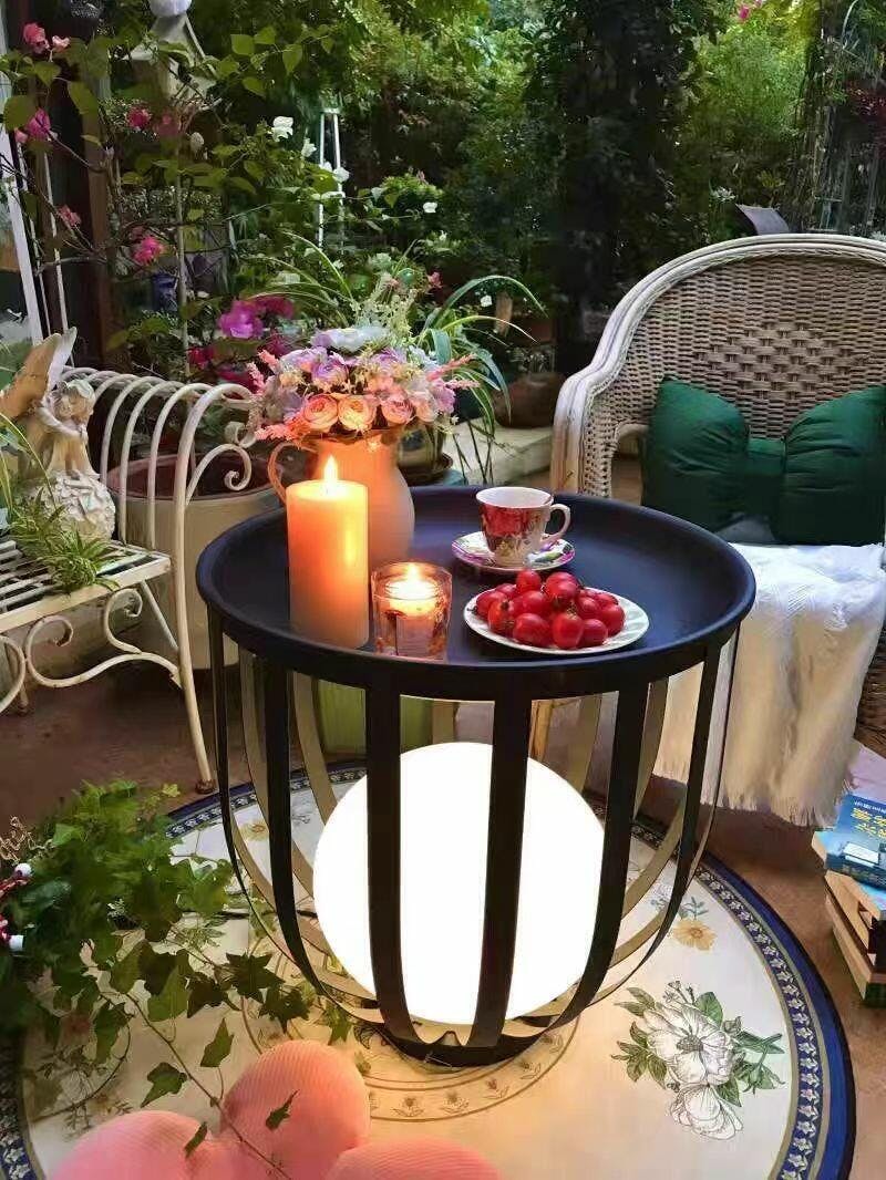 Bols Outdoor Lamp features acrylic shade and integrated dimmable LED. Double-layer coating for high resistance to corrosion and other environmental conditions. Possibility of adding a tray to use as a table. a flower set pot for natural or artificial vegetation. and an stainless steel bold down kit to fix on the floor.