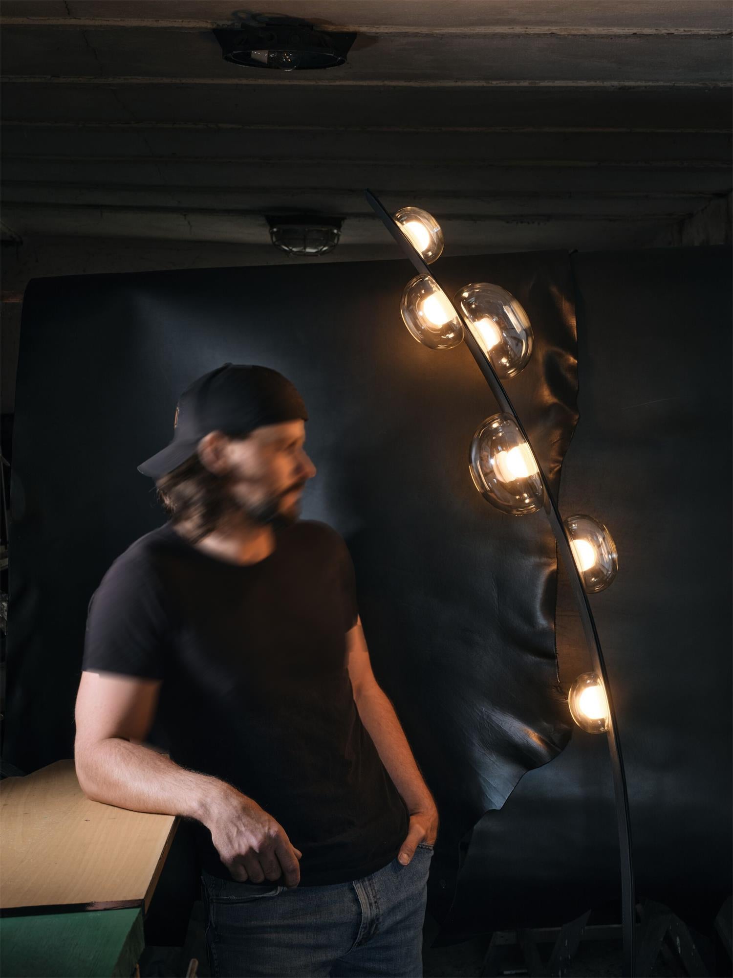 The intimately familiar. yet still charming. shape of dew drops inspired this collection with its precise details. Lit by an internal light source offering an exceptional esthetic experience. the glass objects. with hints of iridescence. adhere tightly to hand-sewn bands from.