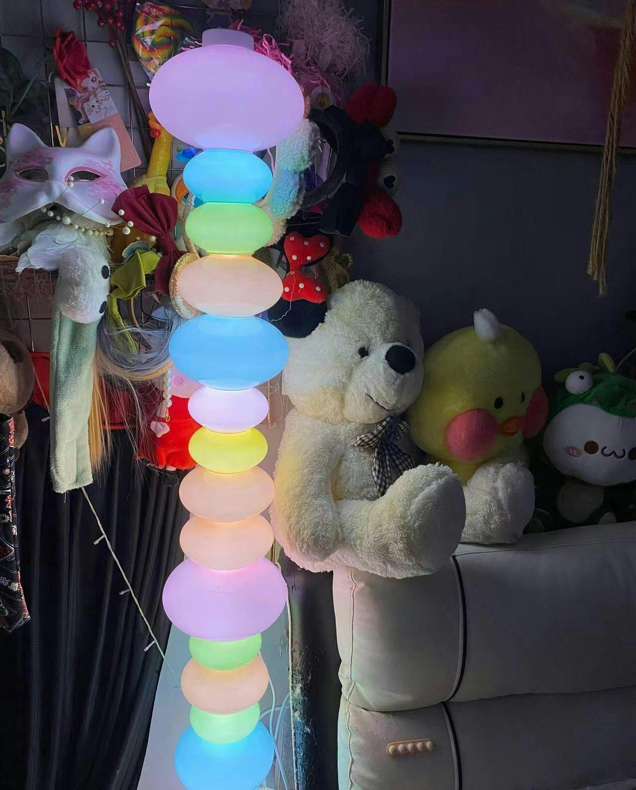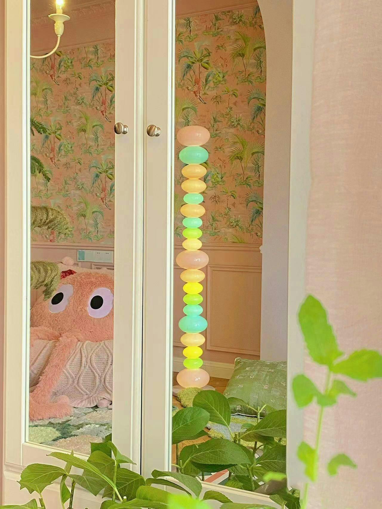 Colorful and beautiful candy floor lamp. it has round and delicate glass. and the size is cleverly combined to create a beautiful and continuous line work. which is simply beautiful!