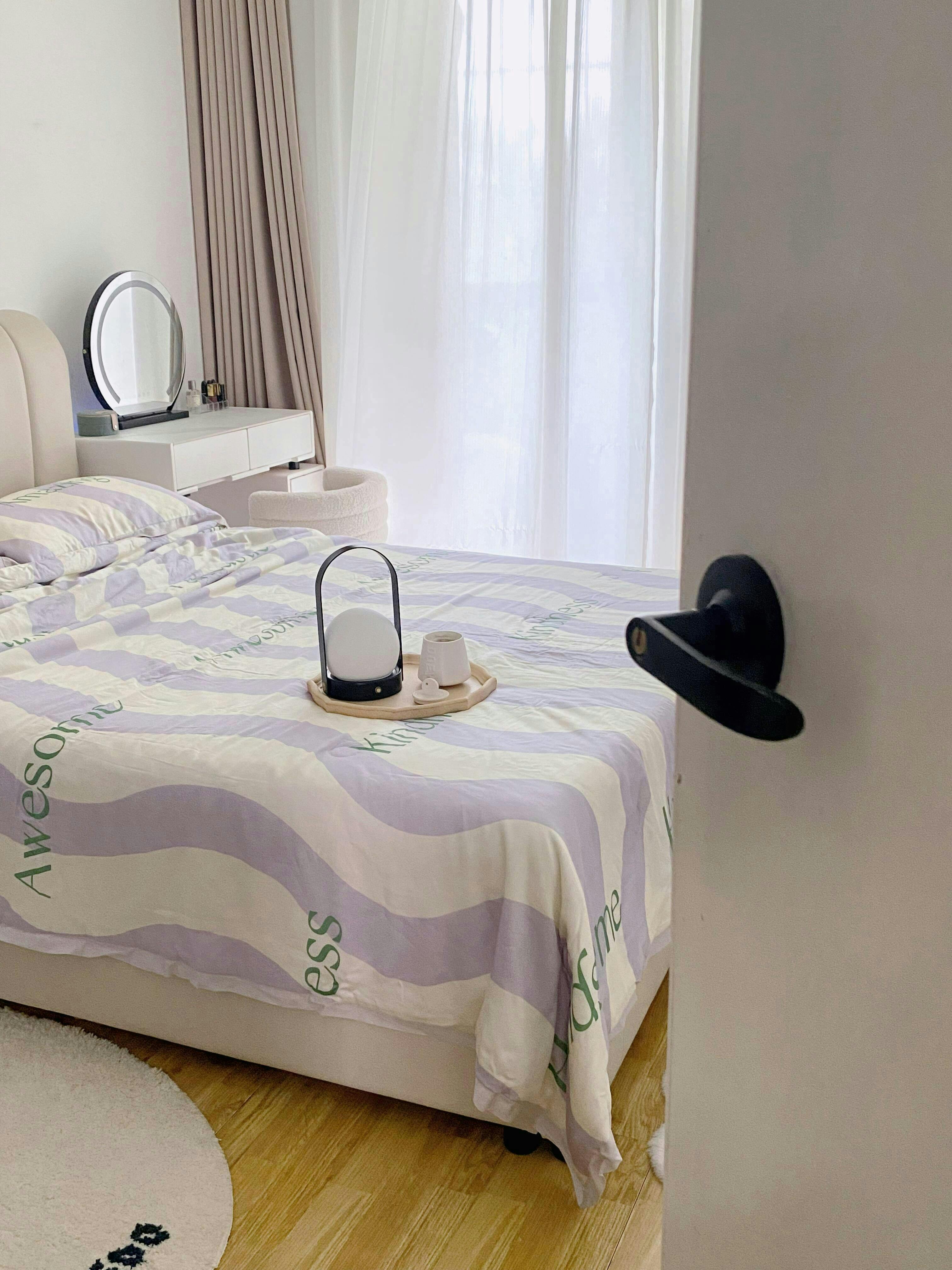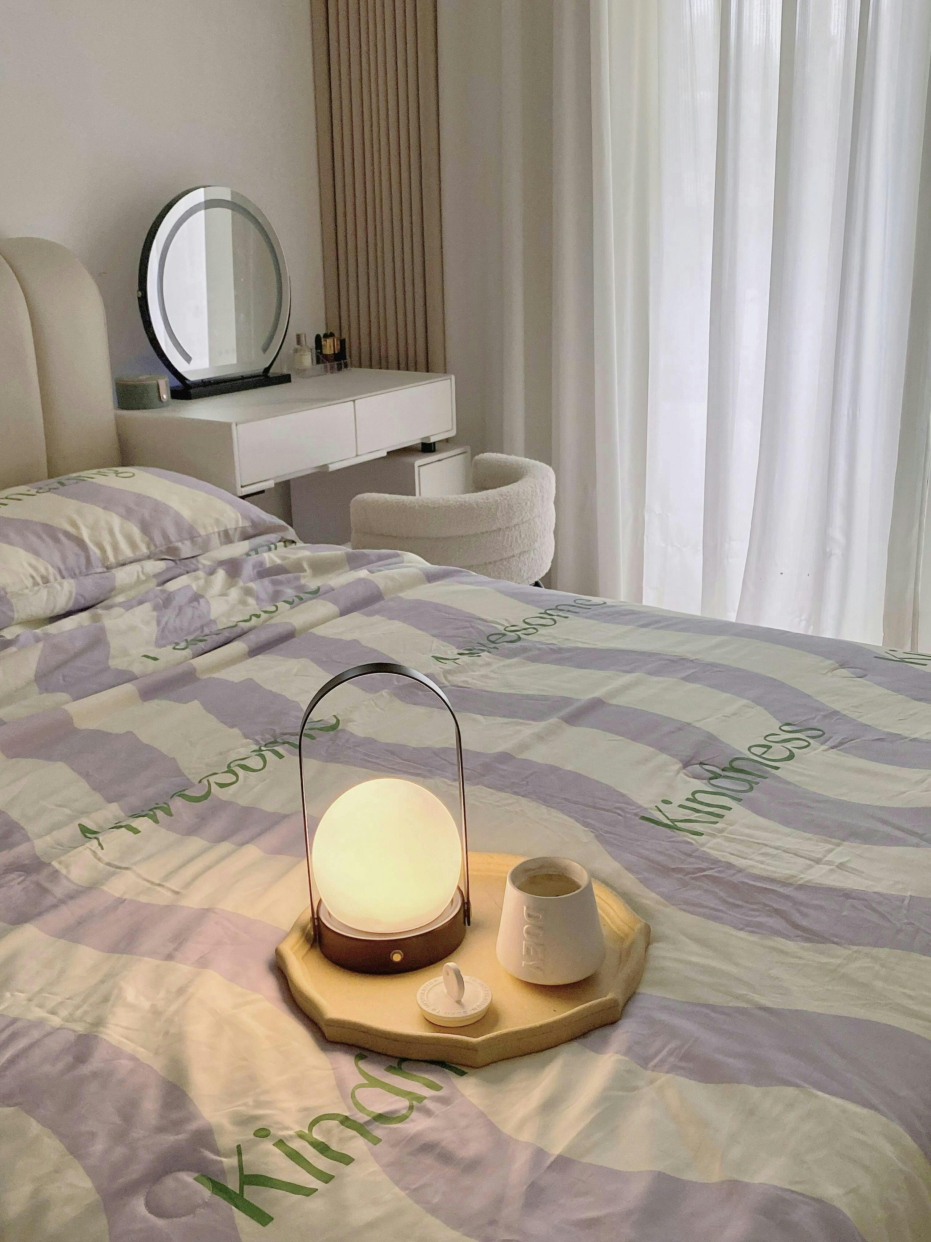 Modern and perfect. Love the white shade and the minimal visual space this lamp takes up in our space.