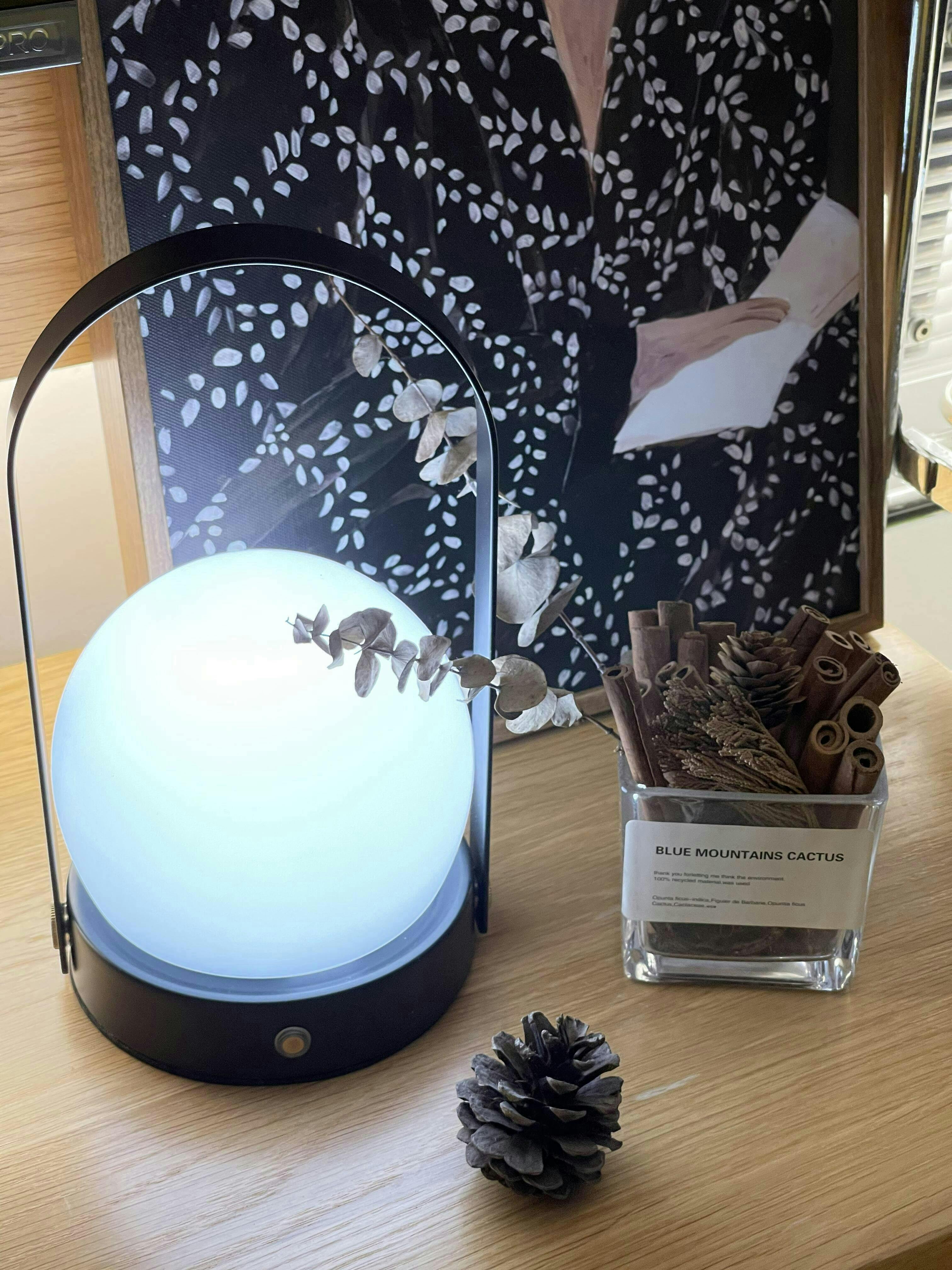 With a sleek. functional handle and a warm orb of light nestled gently in a basket-like base. the Carrie Lamp is useful anywhere. Made with freedom and flexibility in mind. it comes in a range of beautiful colors.