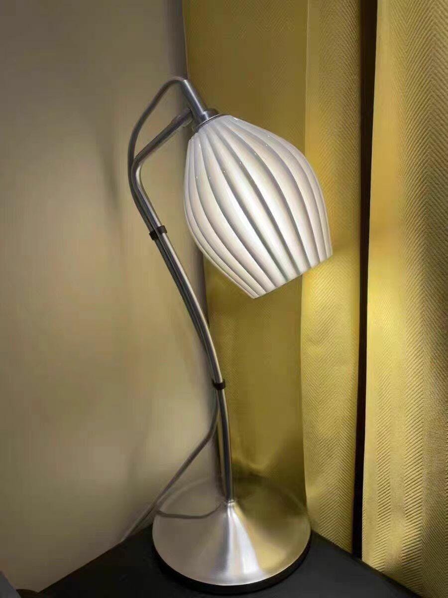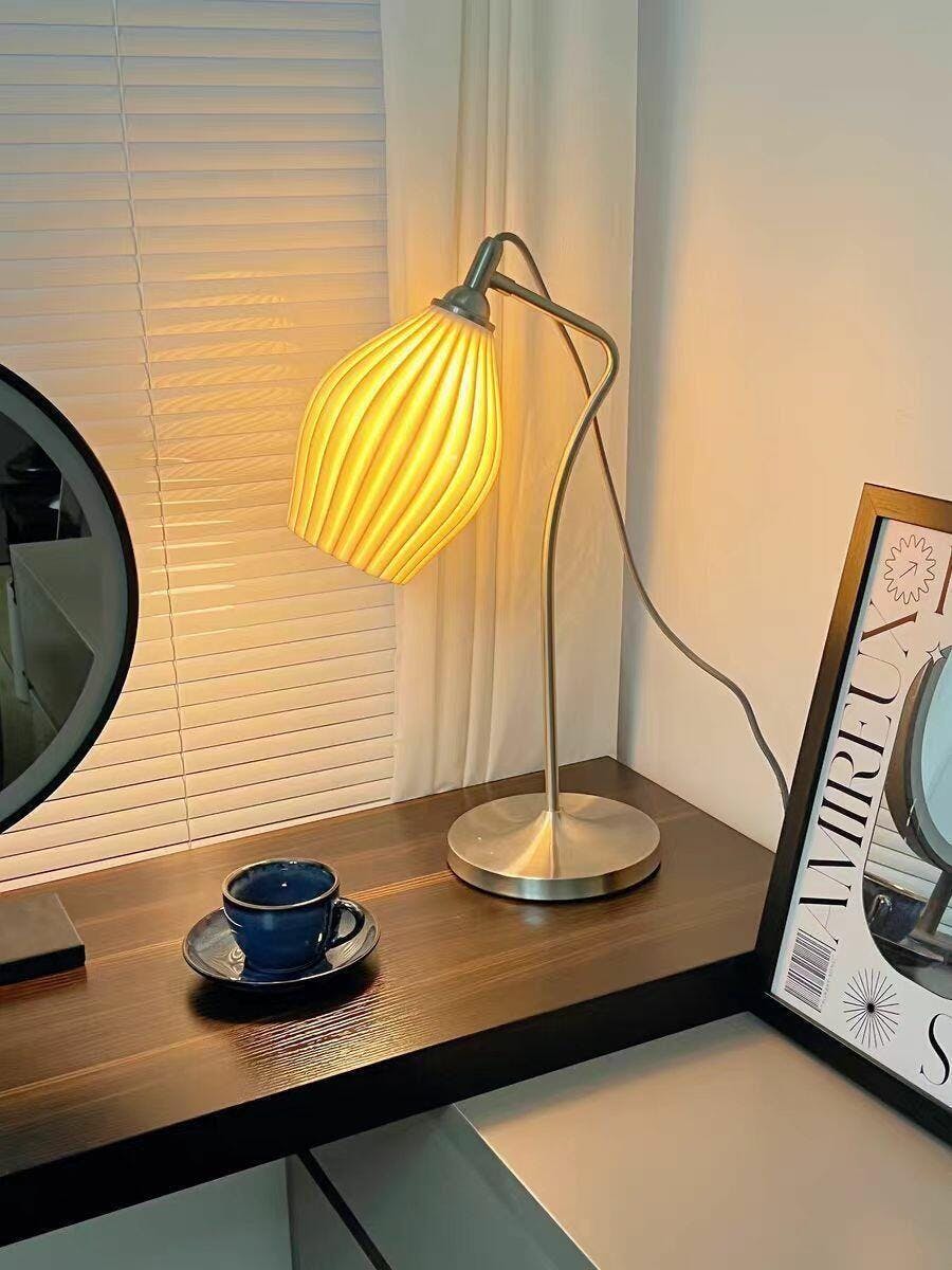 This Ceramic Ribbed Table Lamp is a beautiful and striking addition to any room. With its exquisite bone China shade expertly molded into intricate organic shapes. the lamp creates a dramatic. ambient light when turned on and an elegant art piece when turned off.