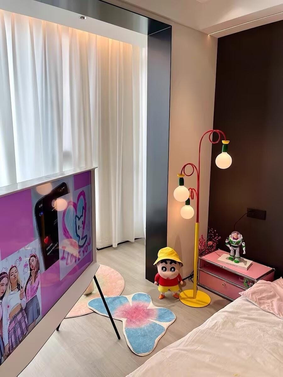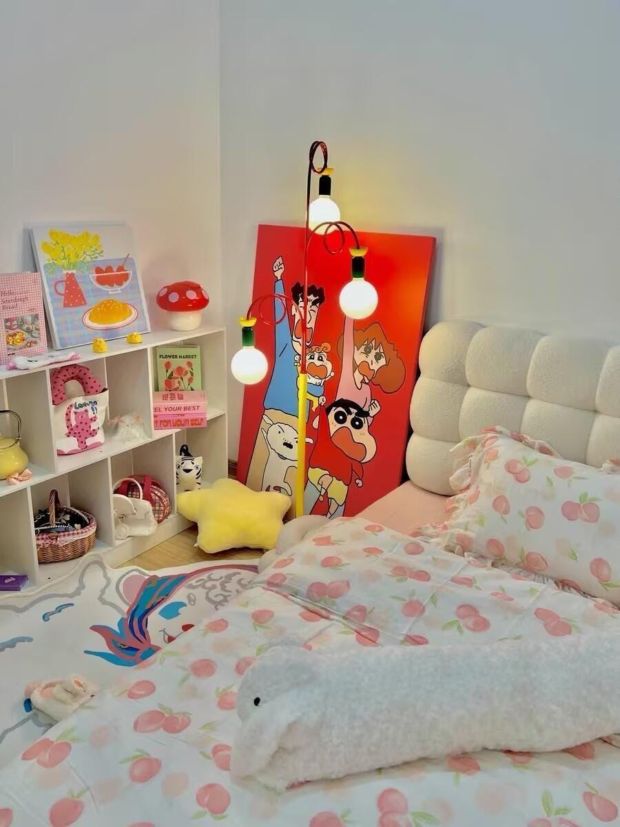 The bold design of this lamp has transformed my reading corner into a stylish nook. The cheerful yellow pole paired with the whimsical red curls complements my colorful personality perfectly