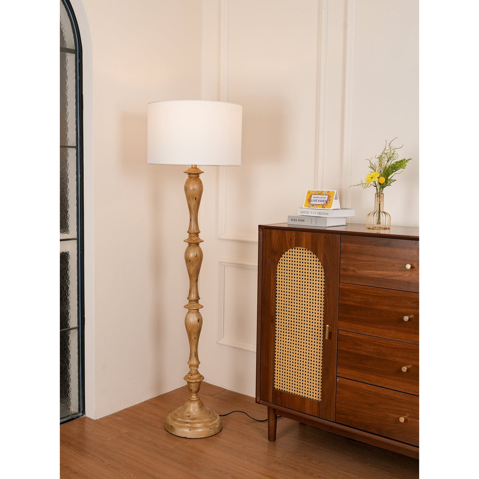 This lovely coastal woodgrain floor lamp creates a relaxed. rustic aesthetic. Delicate shapes and curves combine with rustic weathered tones. the column stand is an elegant blend of round. teardrop and oval shapes. with a lovely rustic distressed wood finish on the solid wood structure. Provides excellent lighting in a bedroom or home office.