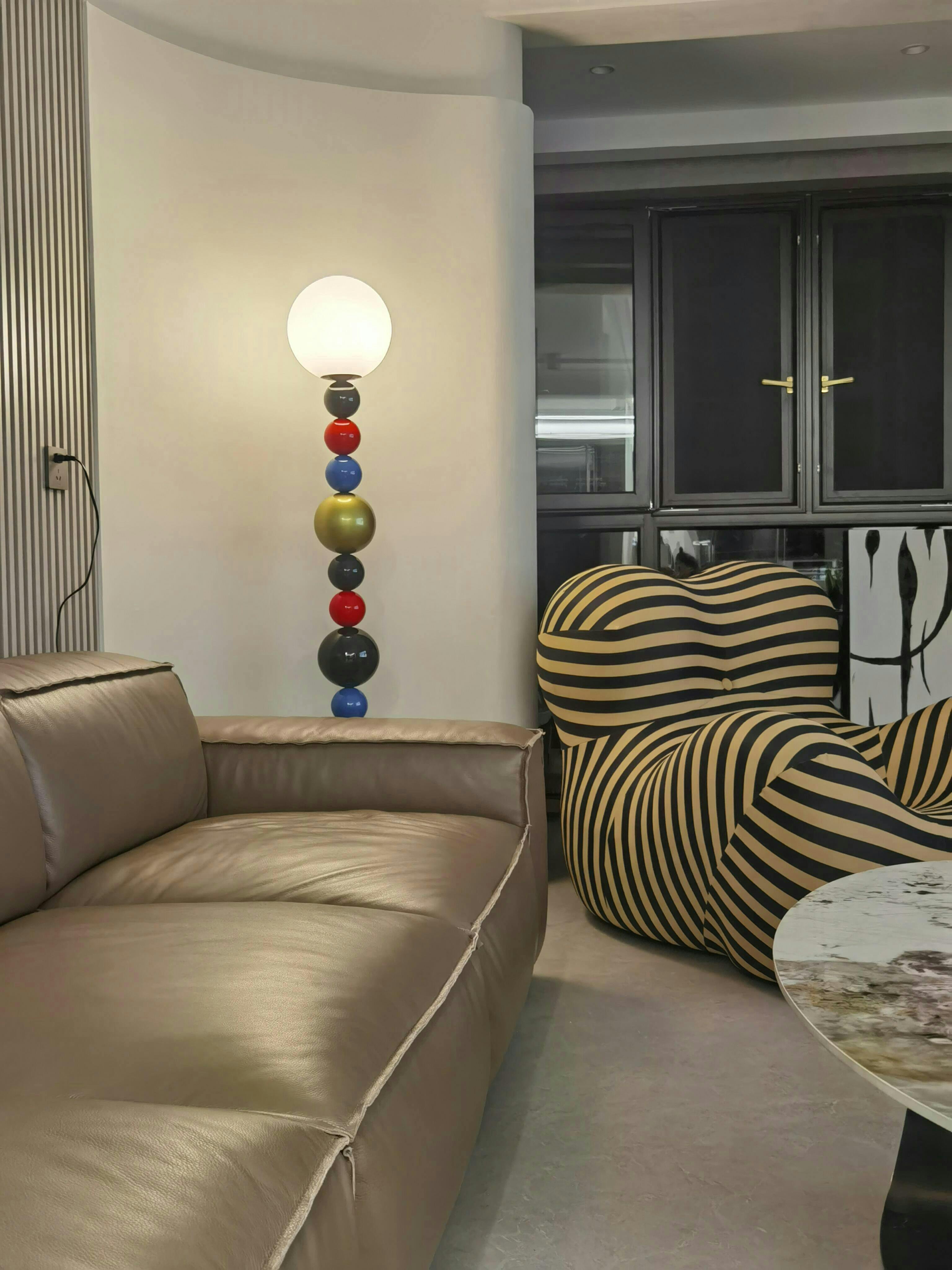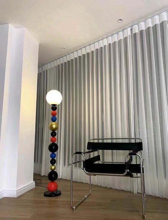 The Colorful Round Ball Floor Lamp is a unique and stylish indoor lighting product that adds a touch of vibrancy and modernity to your space with its eye-catching design and colorful illumination. This floor lamp is crafted using a combination of metal and glass materials. combining elegant aesthetics with high-quality craftsmanship.
