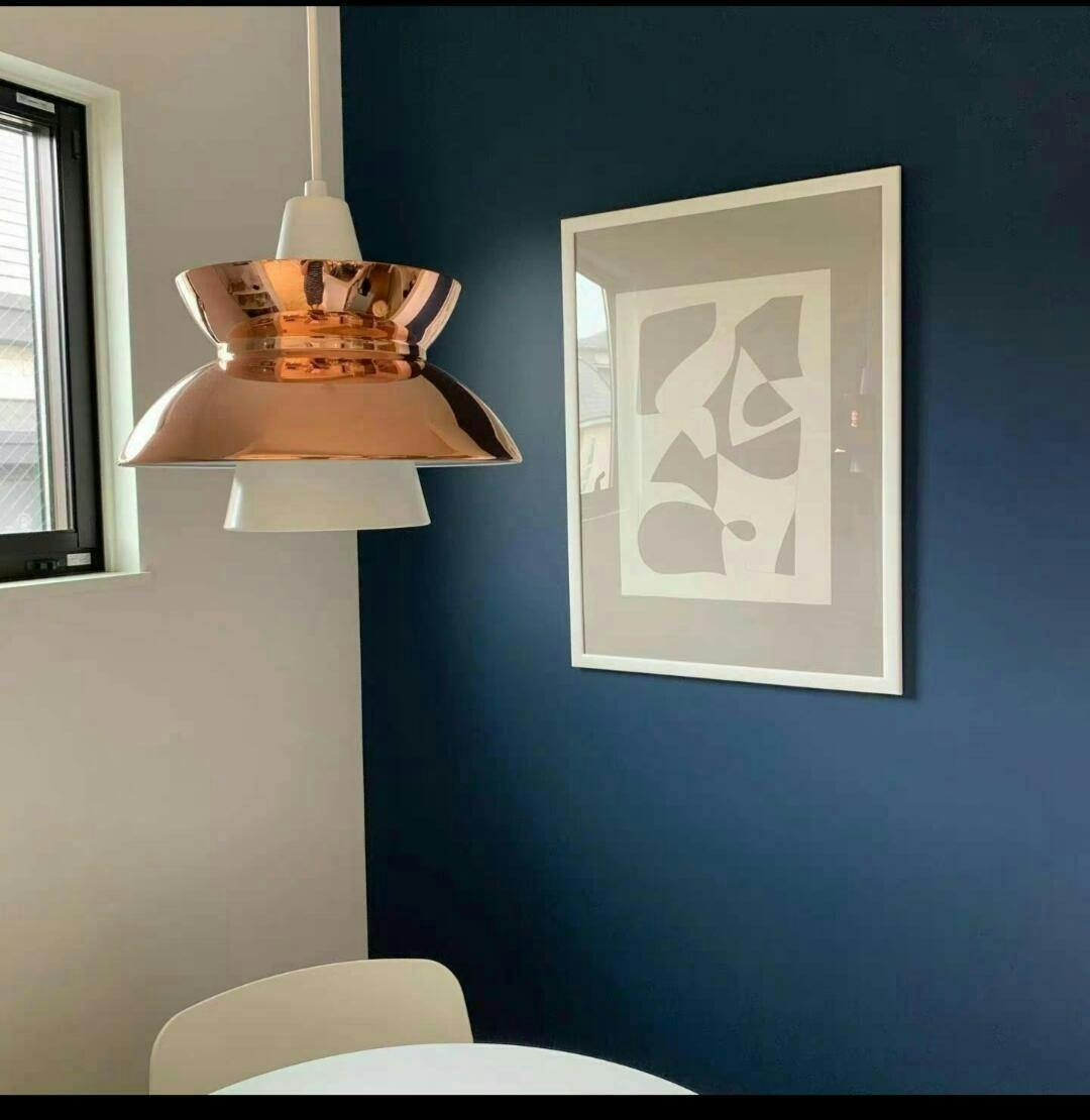 Doo Wop Pendant Lamp has a soft downward light provided by a white. cone-shaped reflector. The main shade helps to guide light both up and down. while also diffusing it to further soften the light. Available in multiple colors.