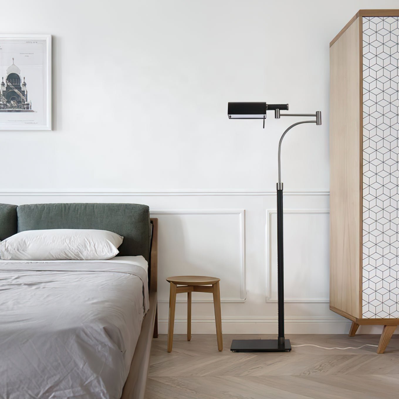 The Edwin Task Floor Lamp is the epitome of modern functionality combined with industrial style. Featuring a sleek. adjustable arm and a sturdy rectangular base. Edwin brings focused illumination to any reading nook or workspace. Its matte black finish and polished details add sophistication. while the flexible head allows for precise light direction. Perfect for those who value style and practicality. this floor lamp complements contemporary interiors with ease. providing both ambient and task lighting wherever it's needed.