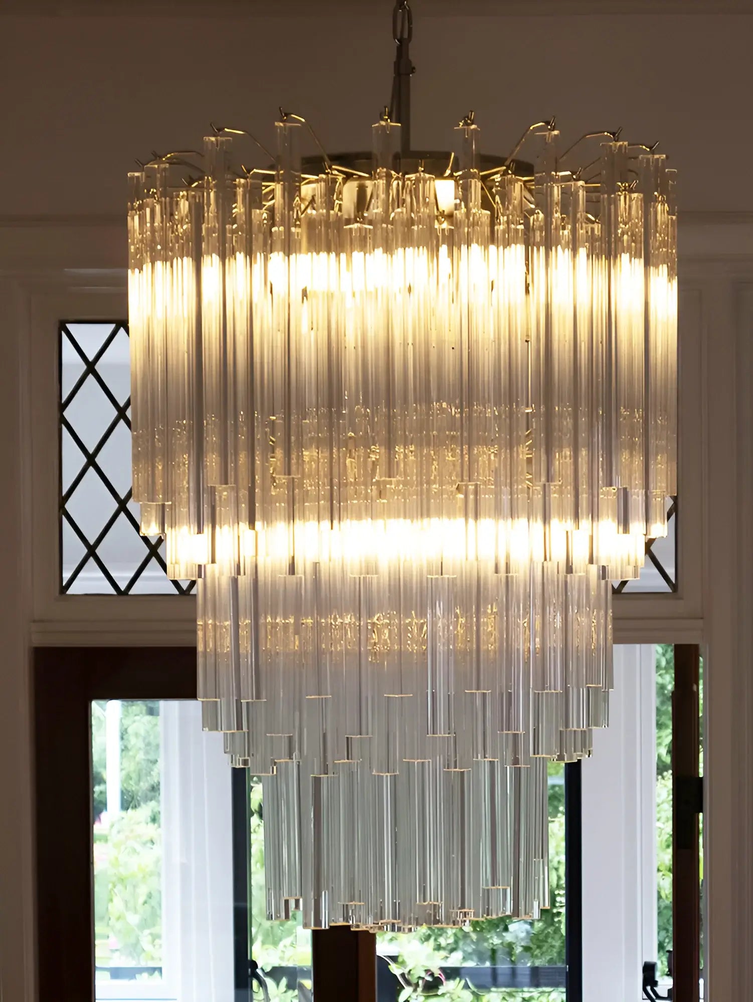 Fantastic Murano Prisms Transparent Chandelier. This chandelier is handcrafted from prisms in clear and Transparent prisms Glass for a subtle and elegant look. perfect for adding a sophisticated vibe to any room. Wherever it's placed. Will be a beautiful and functional piece of art in your home.
