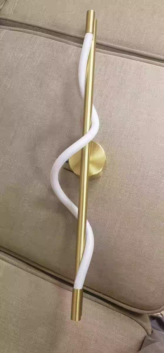 Crafted from the finest silicone and metal. this wall lamp features an enchanting helical form that spirals gracefully. evoking the DNA's double helix structure. The intertwined silicone band offers a diffuse. warm light. creating a cozy ambiance in any room it adorns. Metal accents bring a touch of sleek elegance. balancing the soft glow of the lamp with their lustrous sheen.