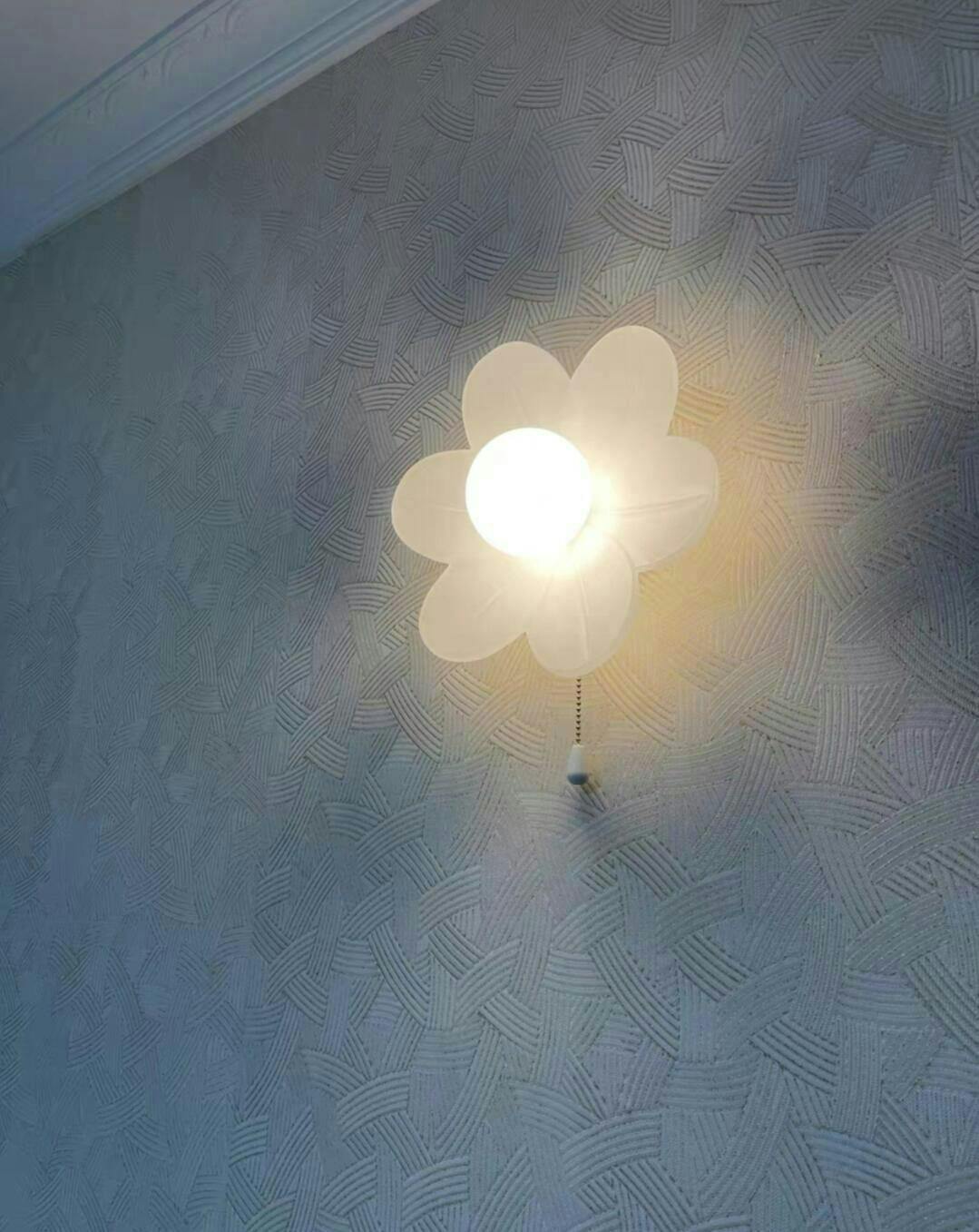 The Flowers Wall Lamp is perfect for a child's bedroom. It features an attractive design composed of three flower shapes made from resin and PC plastic. The lamp emits a soft. warm light that creates a calm atmosphere.