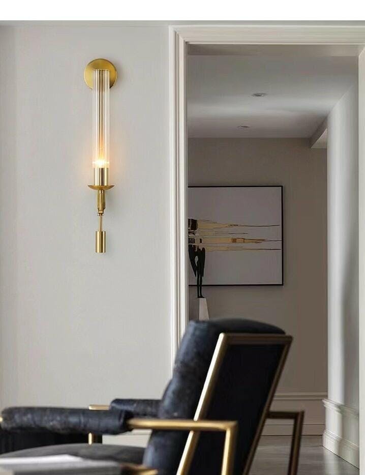 Our fixture evokes 1940s French classicism. Crafted of solid brass. its minimalist architecture features Edison bulbs set within cylinders of ribbed glass. shimmering like candles.