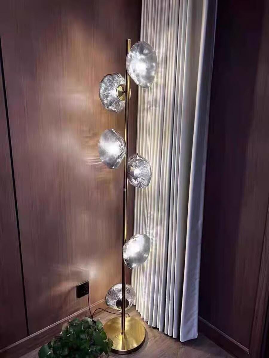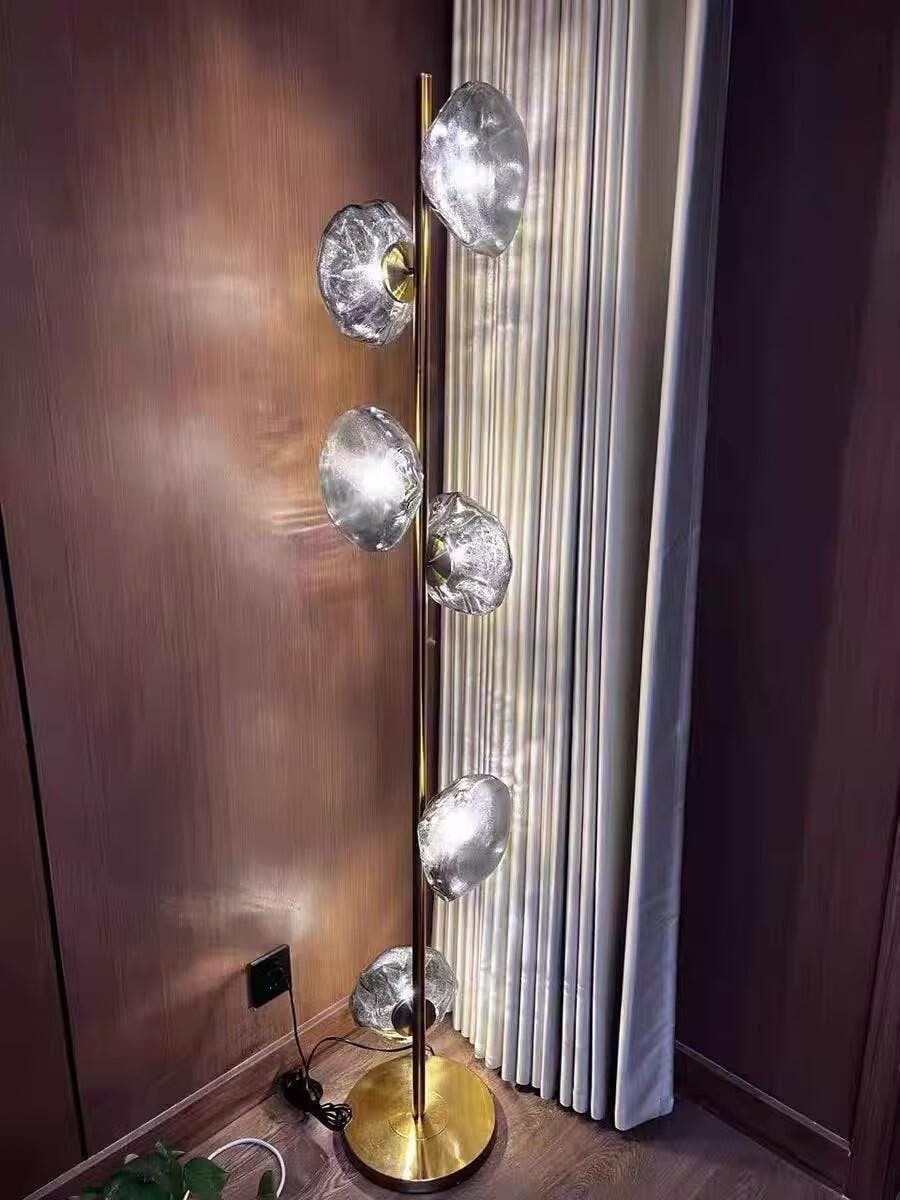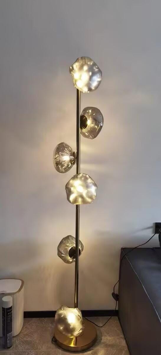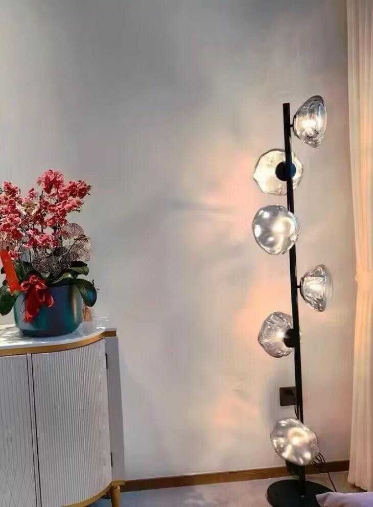 Are you looking for a one-of-a-kind floor lamp to be the focal point of your living room? Take a look at this stunning floor lamp with handcrafted glass lamp shades either in clear or smokey gray. The Glass Petal Floor Lamp features stylish melt lava-like lamp shades that will serve as an art piece in your home.