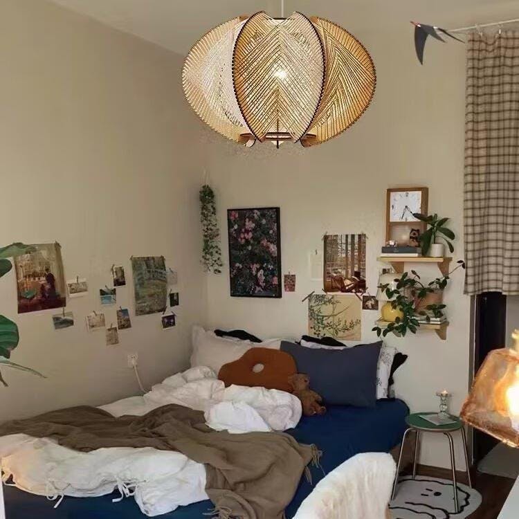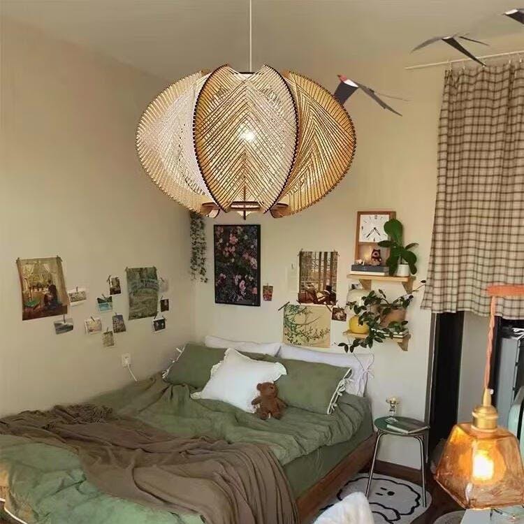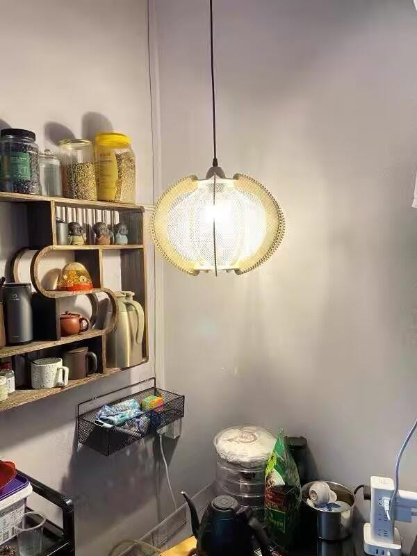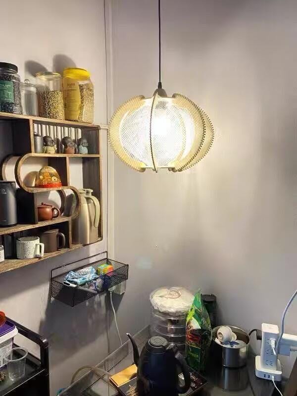 Bring a touch of nature into any space with the Java Pendant Light. This beautiful lighting fixture expertly brings together geometric and natural forms with sheets of wood arranged in a circular shape. plus a multitude of threads that generate a warm and inviting glow when lit. An elegant addition to any home or office.