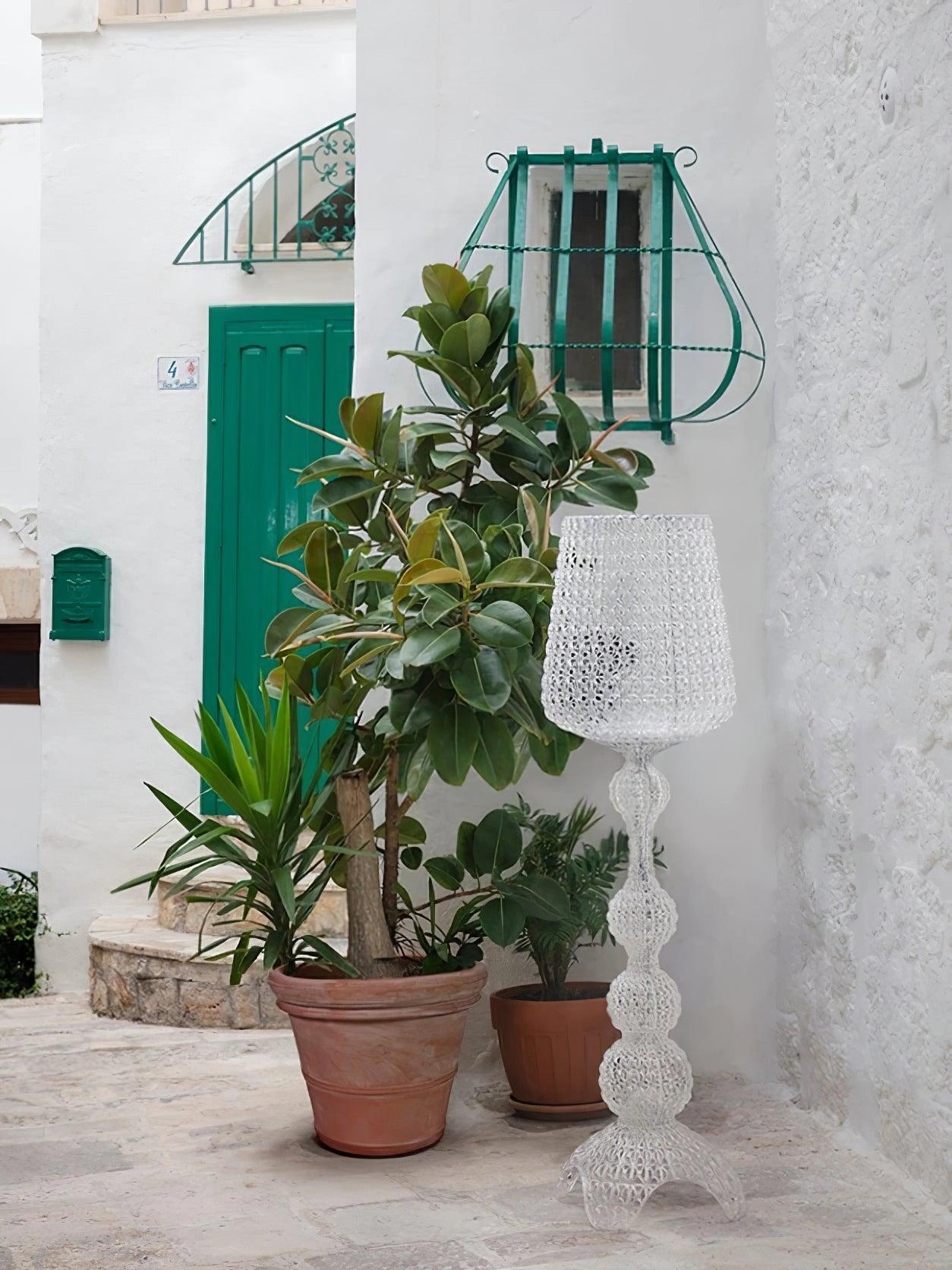 The Kabuki floor lamp series is very decorative and brings an amazing light into the room. made of acrylic and has a easy and delicate look. Kabuki is available in five beautiful colours: blue. clear. green. white. and black.