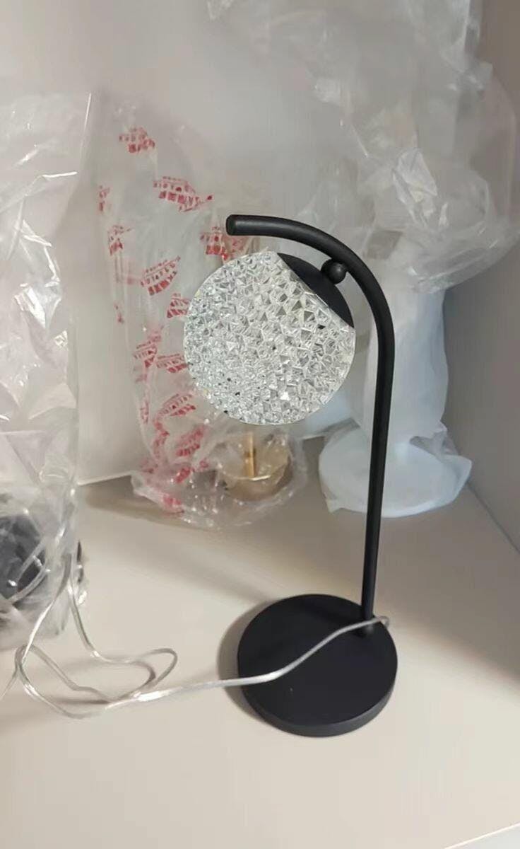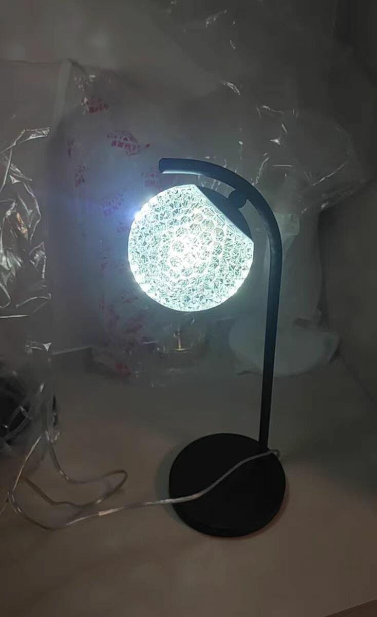 Love this lamp! Perfect for my home office! The light and crystals illuminate on the wall and look so pretty by day and evening. Very pleased with this unique lamp.
