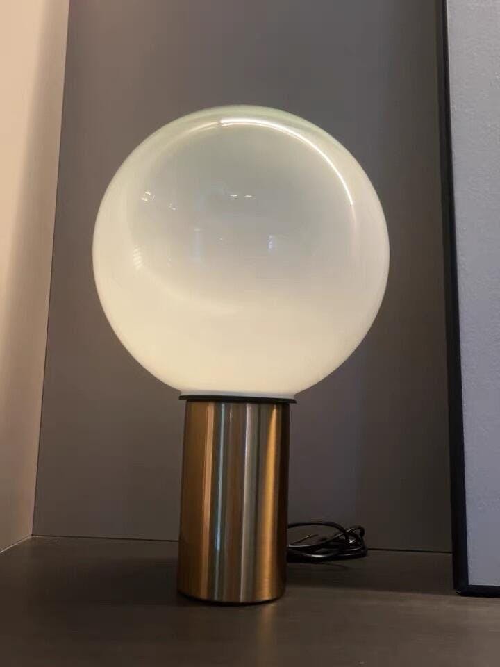 Now available in stunning gold. the Laguna table is a spherical table lamp with a raised base that provides a softly diffused light on the tabletop and casts a warm light in its surrounding environment. This modern and elegant table features hand-blown glass mounted on an aluminum base.