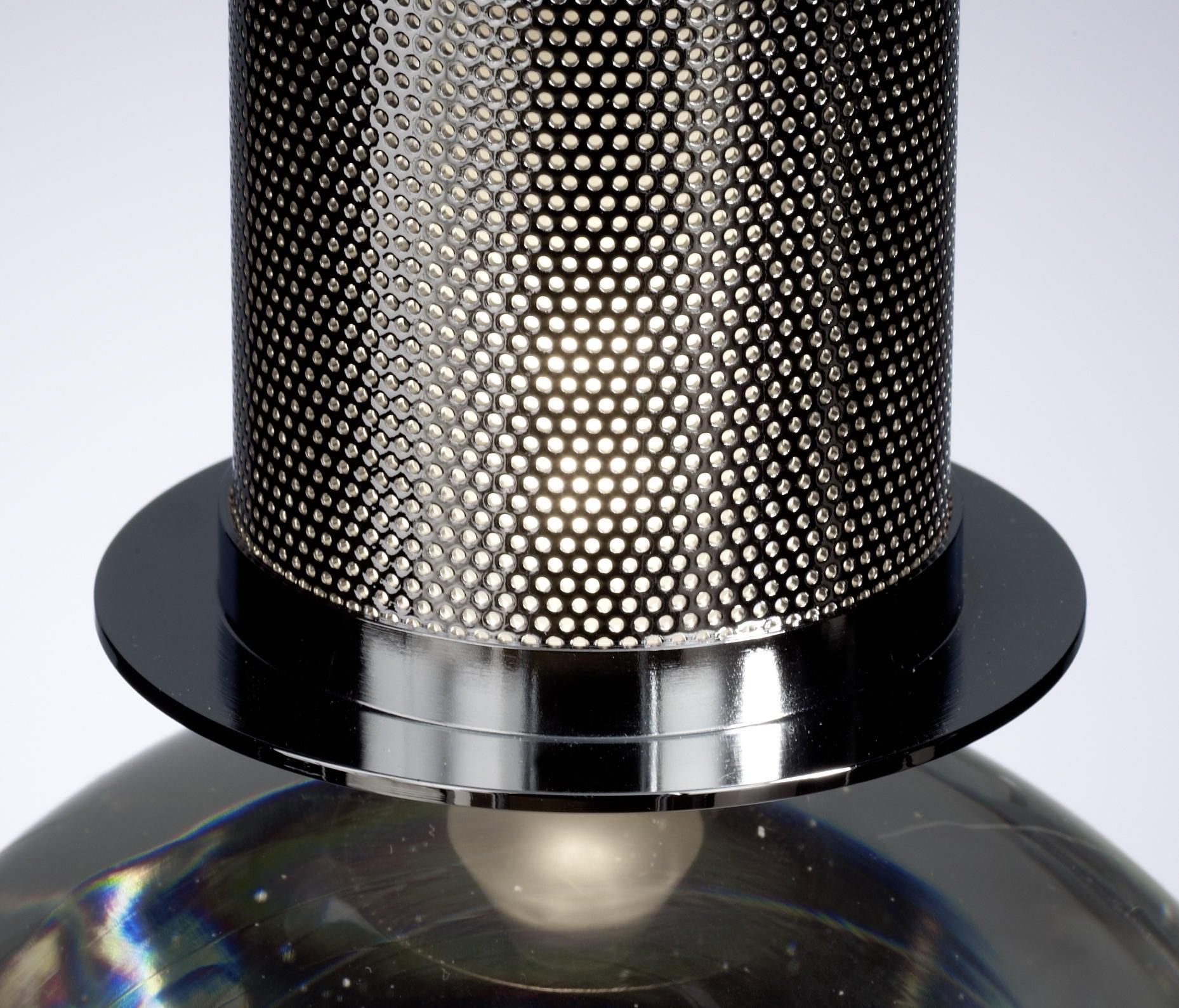 Originally developed in 1981 for the Hamburg restaurant "Le tre streghe" (The Three Witches). you can now bring the high-quality and elegant luminaire into your home. The solid. handmade glass globe is a special feature of the luminaire. which provides interesting lighting effects when switched on. The LED light source is located above the almost floating globe.