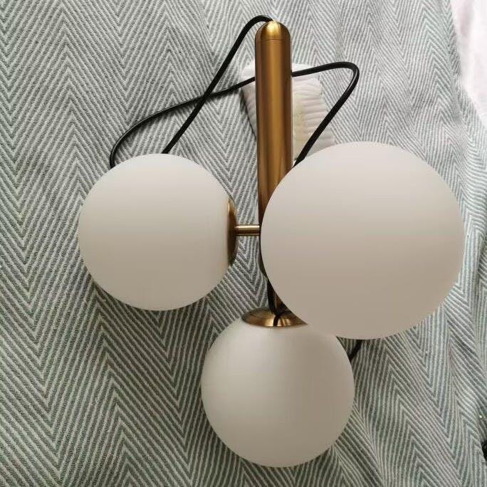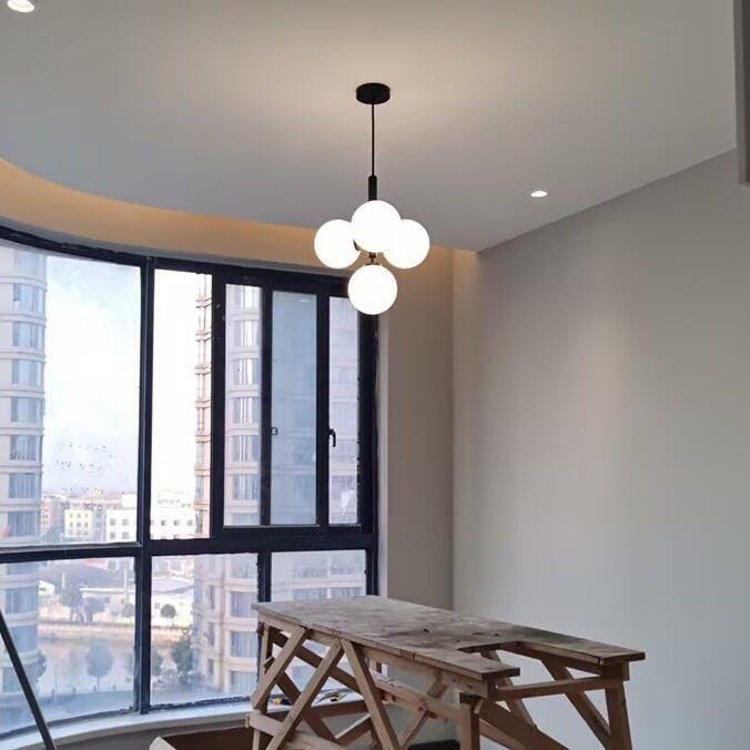 Luminae Pendant Light features mouth-blown glass spheres paired with a sleek. crafted metal structure. embodying a sense of balance and depth. The Optic Clear glass version. with its distinctive embossed pattern. adds a playful and vibrant atmosphere to any room. while the Opal glass version offers a warm and inviting glow.