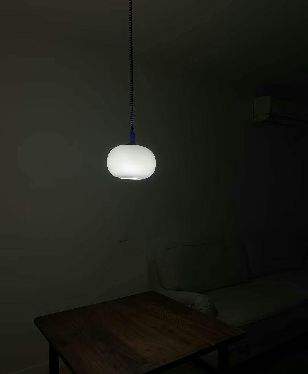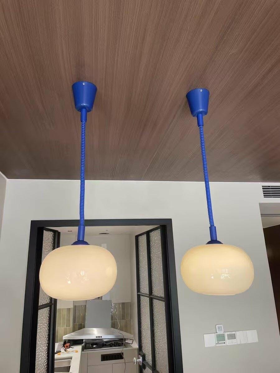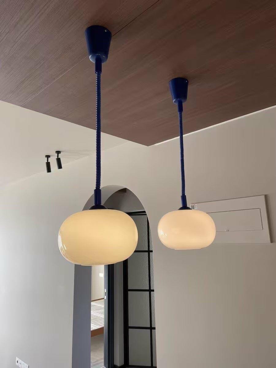 Elevate your living space with the exquisite Macaron Spring Pendant Light. Crafted with a seamless combination of ironwork and glass. this stunning lighting fixture adds a touch of sophistication and whimsy to any room. Available in vibrant hues of red. blue. and yellow for the body. and a crisp white for the lampshade. it effortlessly complements diverse interior styles.