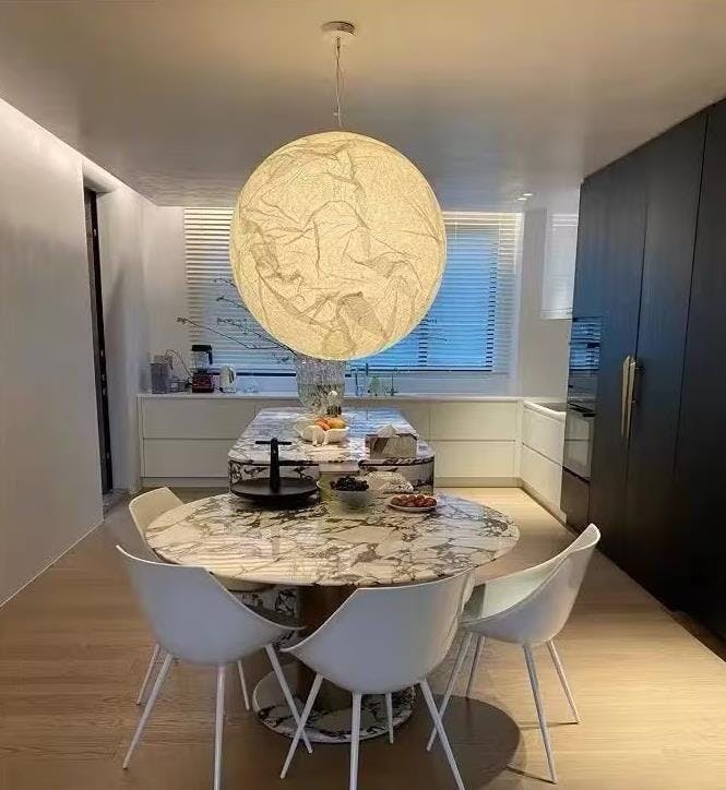 The Moon Pendant Lamp transcends its function as a lighting fixture. It stands as a sculptural piece. a poetic symbol that combines form. texture. and light to echo the celestial charm. It's more than just a lamp—it's a lunar fantasy that brings the ethereal presence of the moon into the heart of your space.