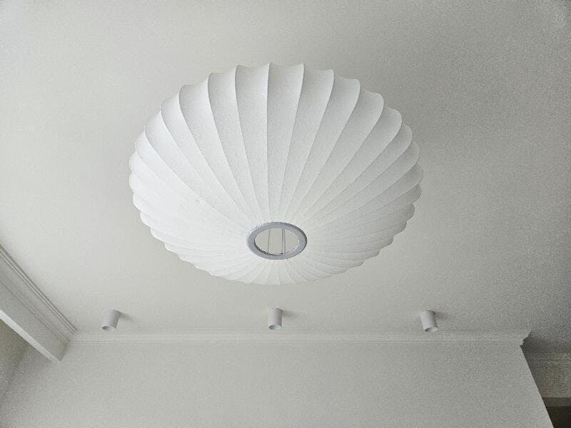 An excellent light! It looks much more white and brighter than you would expect for a paper lantern style lamp.