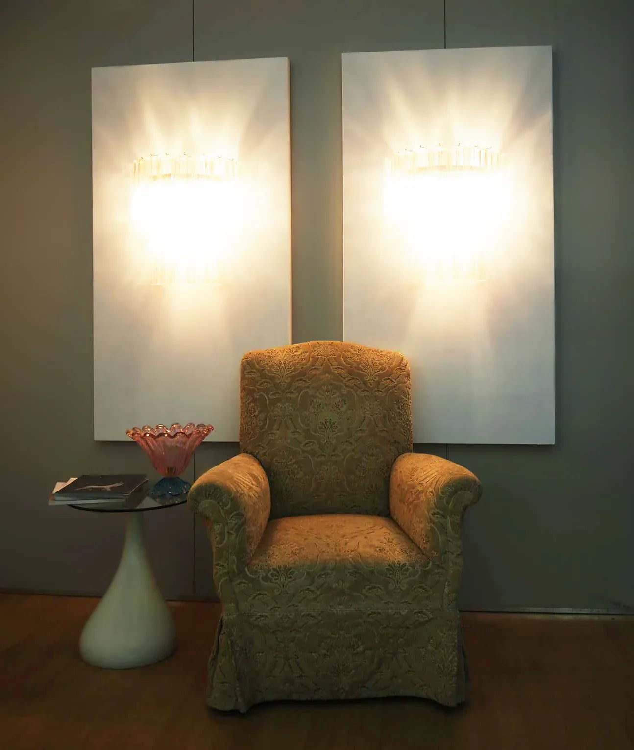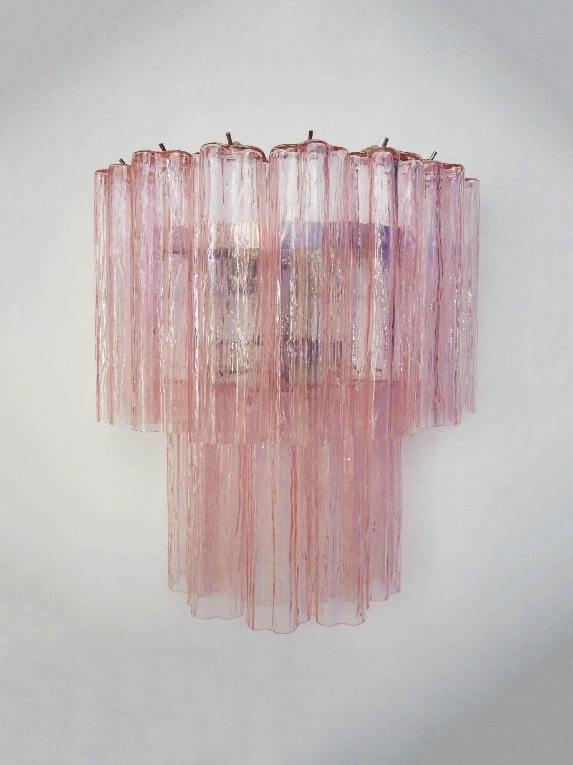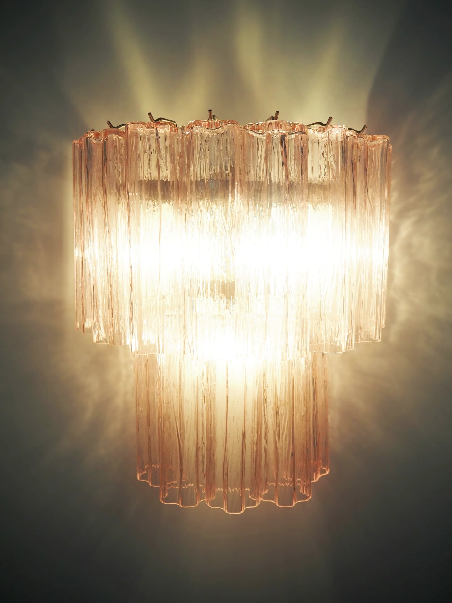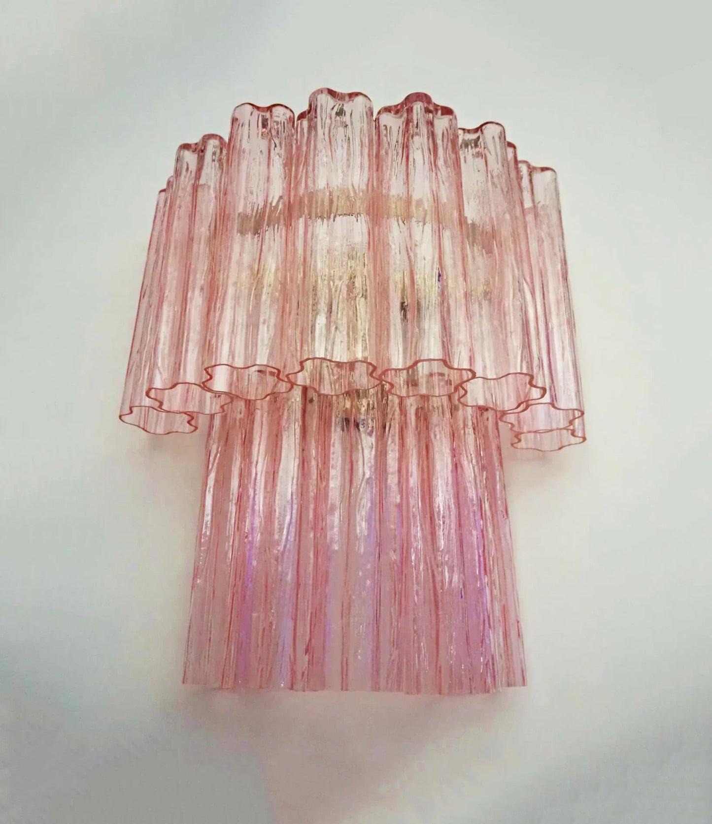 Elevate your home decor with our exquisite Pink Murano Glass Tube Wall Sconces. These vintage wall lamps are handcrafted in a stunning combination of Murano glass. With Pink glass tubes forming a star shape. these sconces will add a touch of elegance and sophistication to any room.