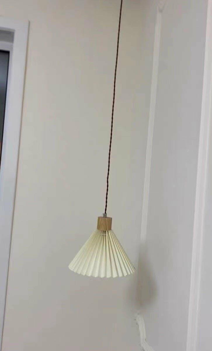 The Pleated Wooden Pendant Light is a stylish. modern lighting solution for your home. Crafted from elegant pleats of fabric. this light creates an inviting atmosphere that showcases the beauty of real wood. The combination of natural wood and contemporary design enhances the decor in any room.