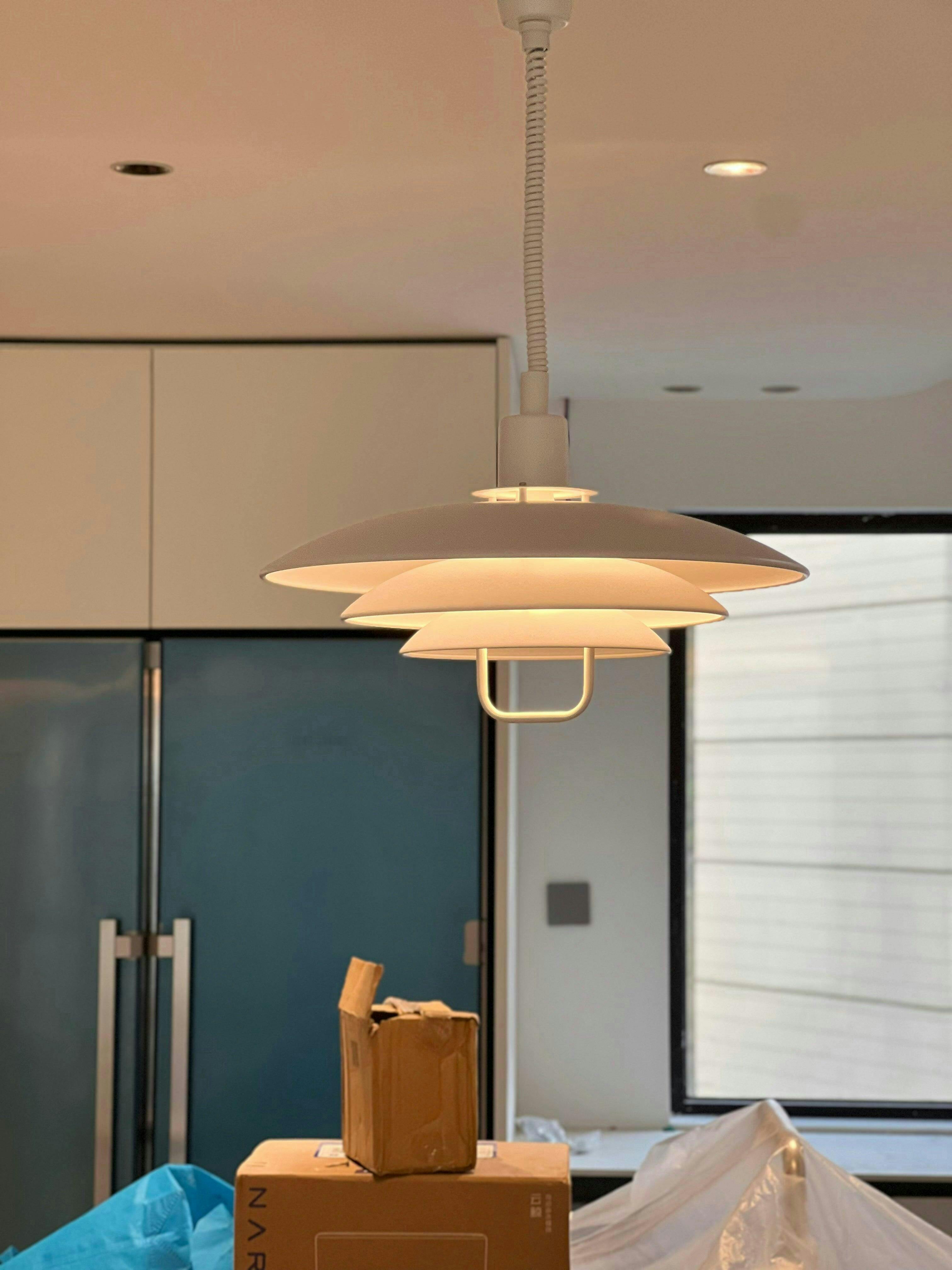 Elevate your space with the Poul Pendant Lamp. This stunning lamp features three screens in expanding concentric circles. creating a modern and elegant aesthetic. Perfectly placed above your dining or coffee table. it adds a touch of sophistication to any room. Upgrade your decor with this expertly designed piece.