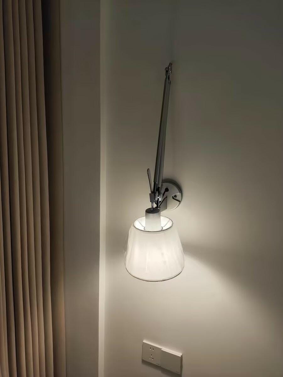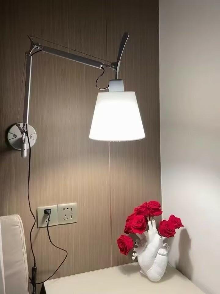 The Rocker Modern Design Wall Lamp offers powerful. precision lighting in a sleek. industrial design. Its aluminum arms are adjustable for flexible direction. and its classic shade adds a hint of charm.