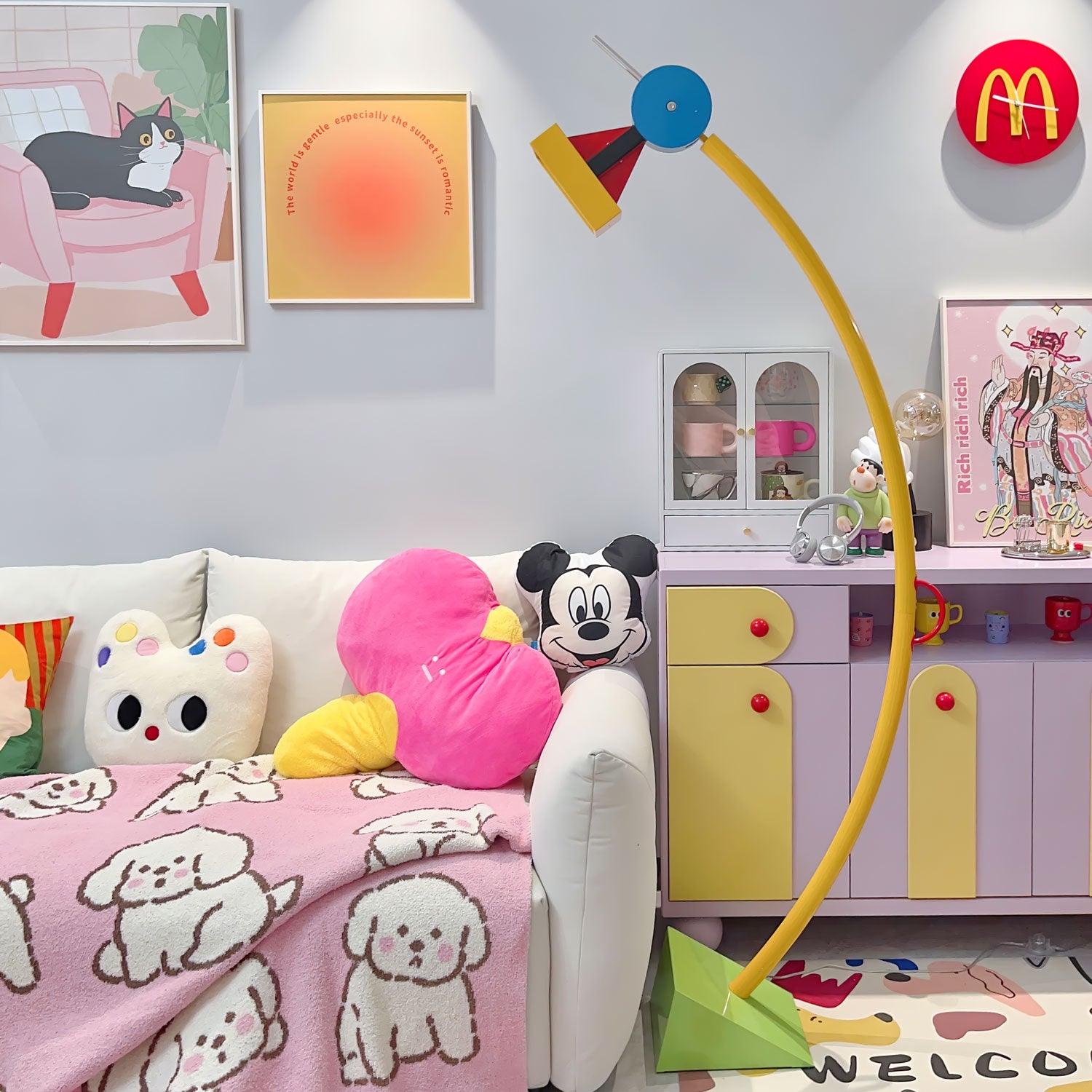 As a Memphis-style floor lamp. the Treetops Floor Lamp boasts exciting colors and complex geometries that add a unique. vibrant touch to any home decor. Add a dynamic energy to your living space with this expertly crafted lamp.