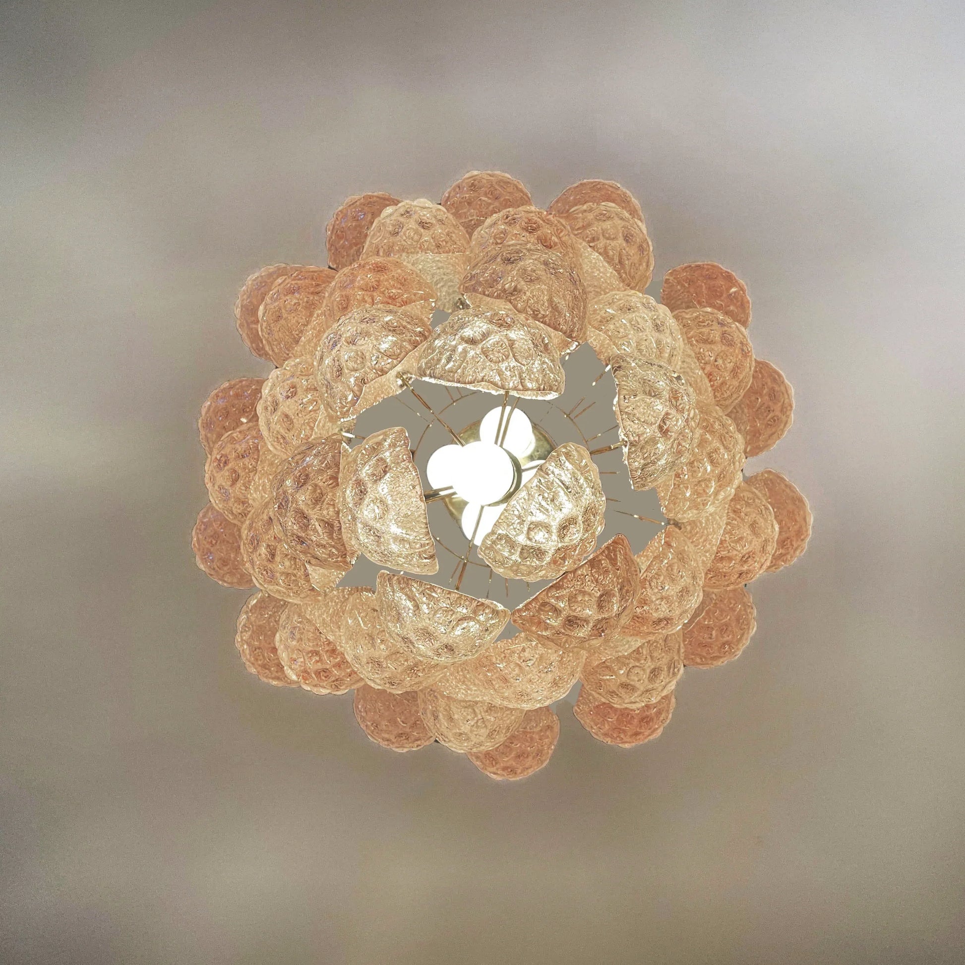 Vintage Murano Pink Glass Petals Chandelier. Inject romance and elegance into your home. This exquisite chandelier features beautifully crafted pink glass petals. arranged to create a dazzling display of light and color that will enhance any space. Carefully handcrafted. it emits a warm and inviting glow. perfect for creating a cozy ambiance.