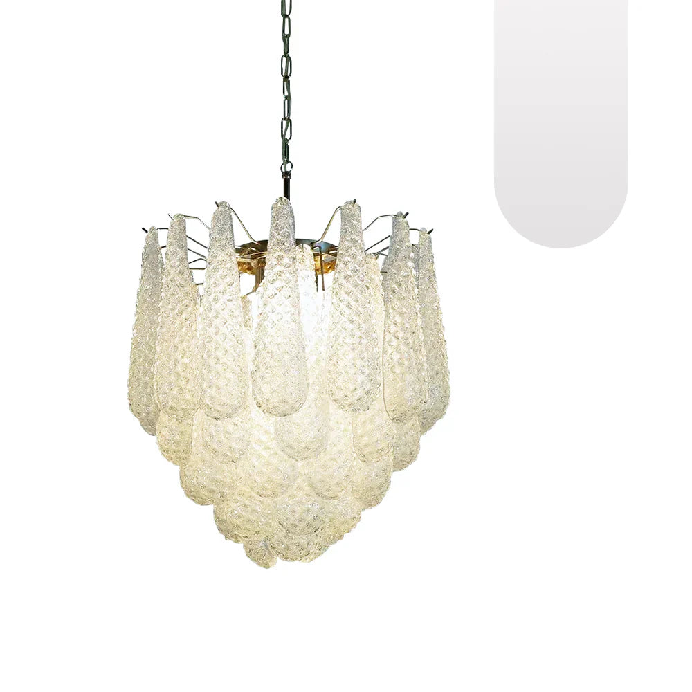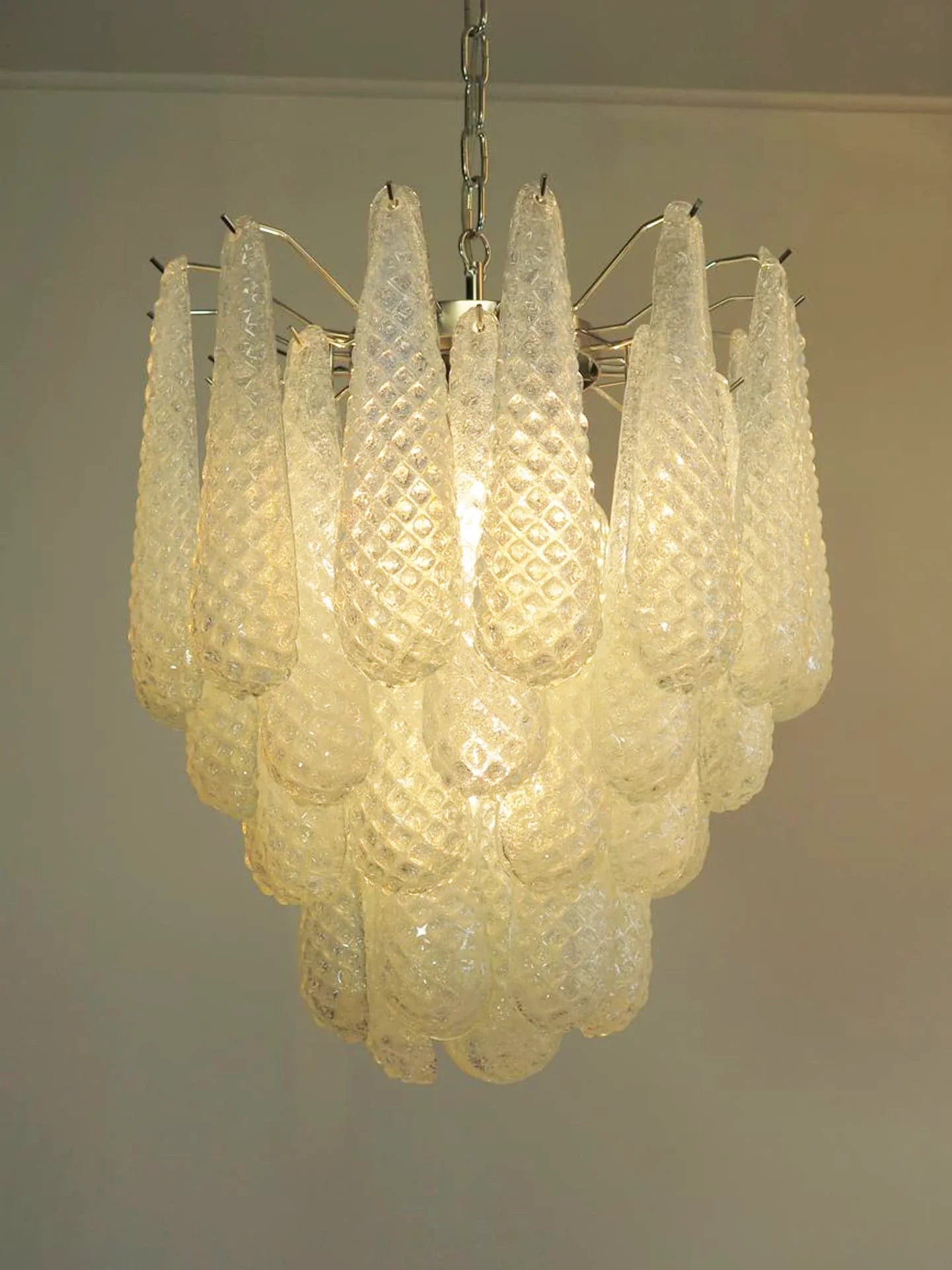 Vintage Murano Transparent Glass Petals Chandelier. Inject romance and elegance into your home. This exquisite chandelier features beautifully crafted Transparent glass petals. arranged to create a dazzling display of light and color that will enhance any space. Carefully handcrafted. it emits a warm and inviting glow. perfect for creating a cozy ambiance.