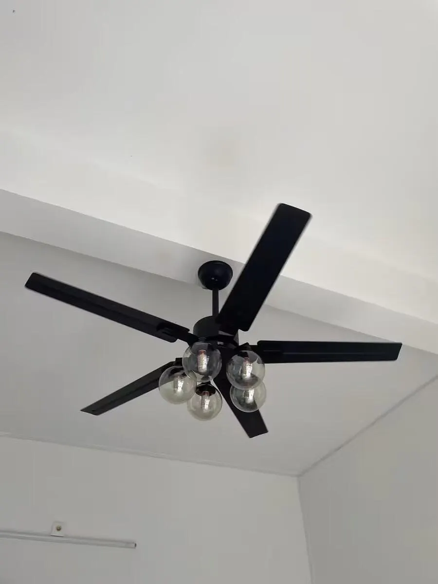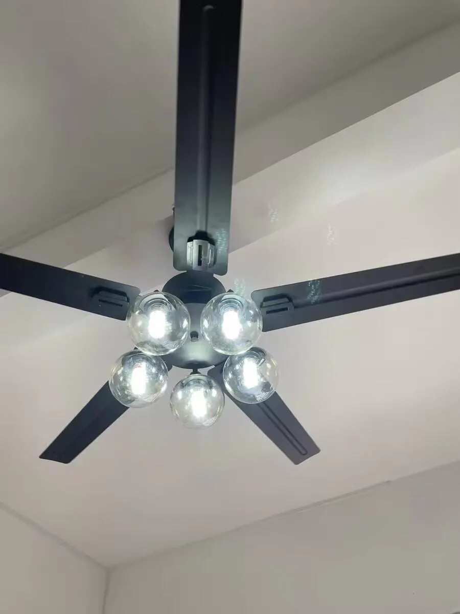 Add a contemporary look to your home with the Home Ceiling fan Three sizes 52/48/42 in. LED Black/White metal High temperature baking paint Ceiling Fan. This 3-speed fan features 3-5-blades to help move air efficiently, with quiet, wobble-free operation. This fixture offers anlight by 3-5 glass/clear glass lamp and 40Watt.
