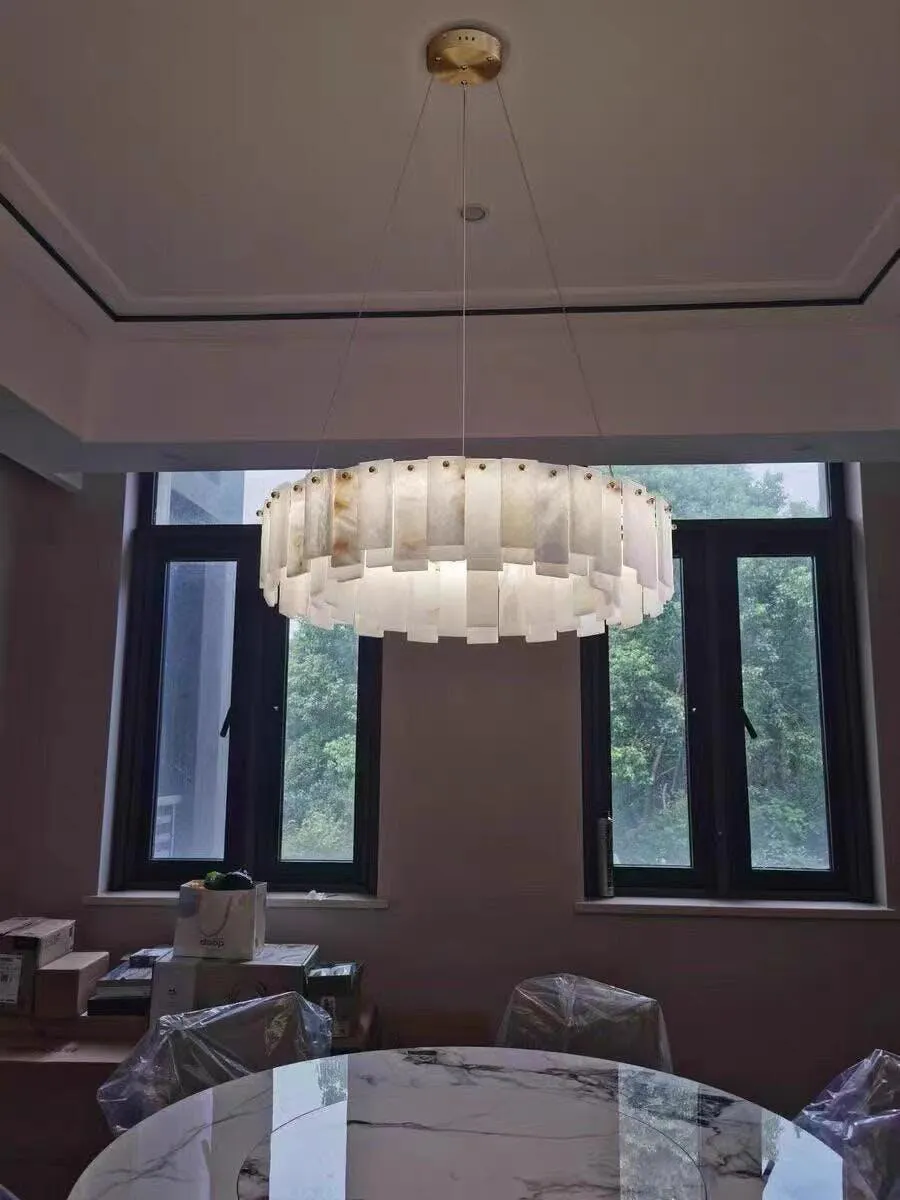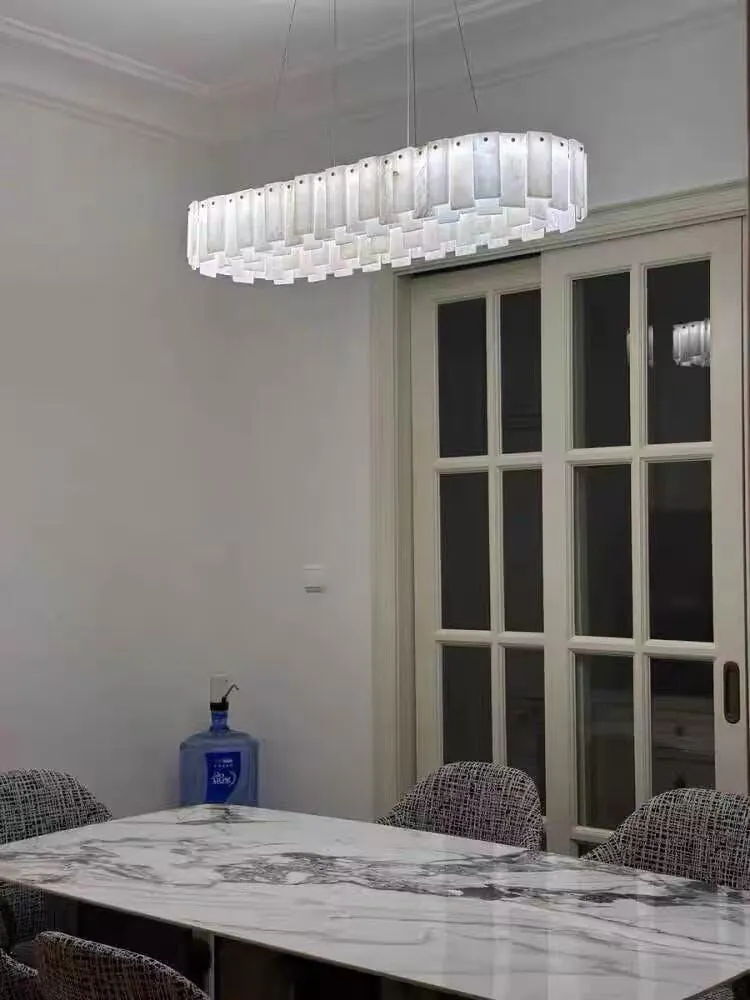 I recently got this Natural Alabaster Pendant Lights, and it's honestly made such a difference in my home. It lights up the my dining area, in a way that's both bright and soft at the same time, creating a really welcoming vibe. The design is sleek and fits perfectly with my decor, adding just the right amount of elegance. The dimmable bulb is a great feature, allowing me to set the mood exactly how I want it, from bright and lively for gatherings to soft and cozy for a quiet evening. It was a bit of a task to install, but nothing too troublesome. If you're looking to elevate your space, this chandelier could do just that. It's been a lovely addition to my dining area, and I'm constantly getting compliments on it.