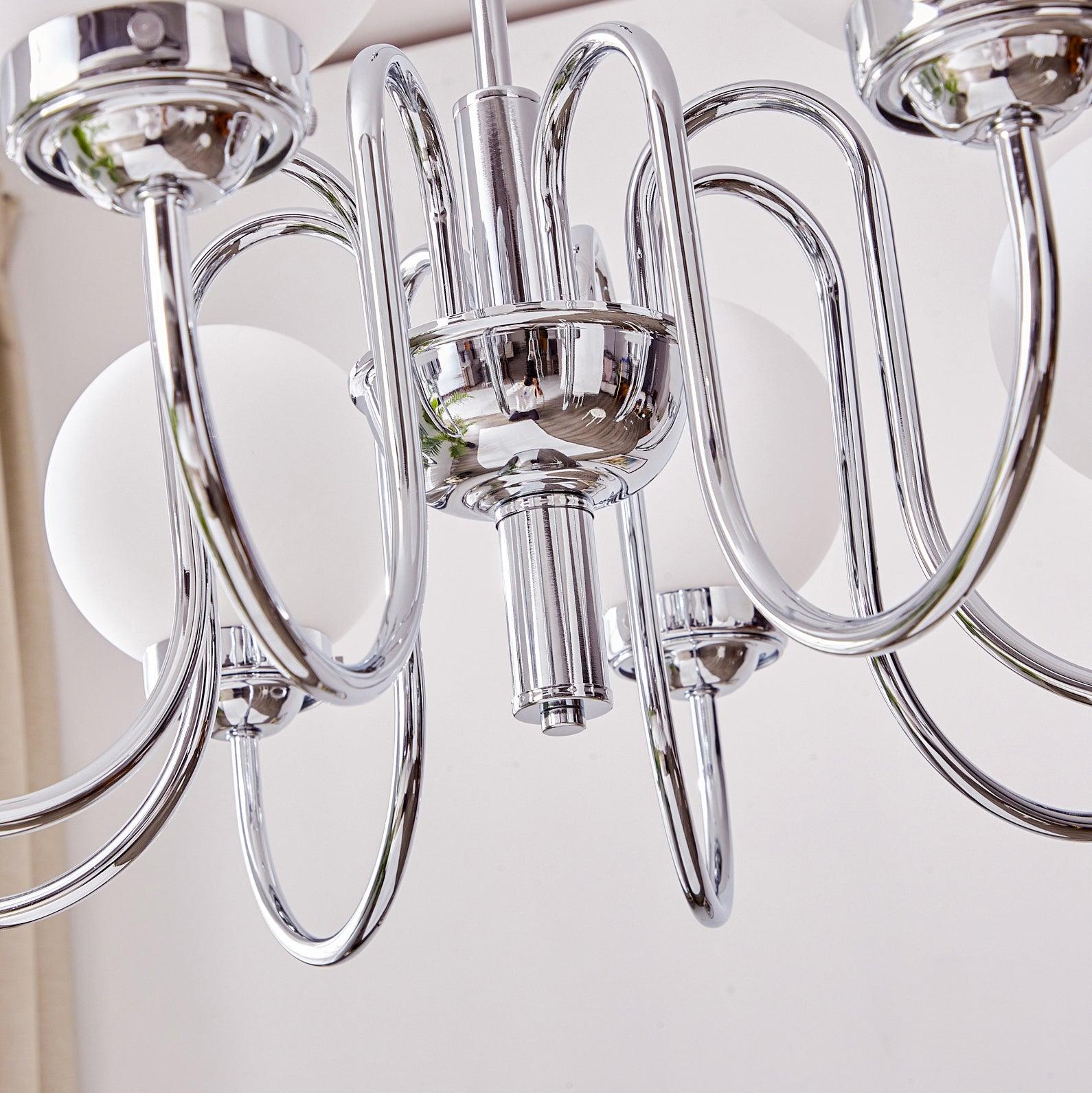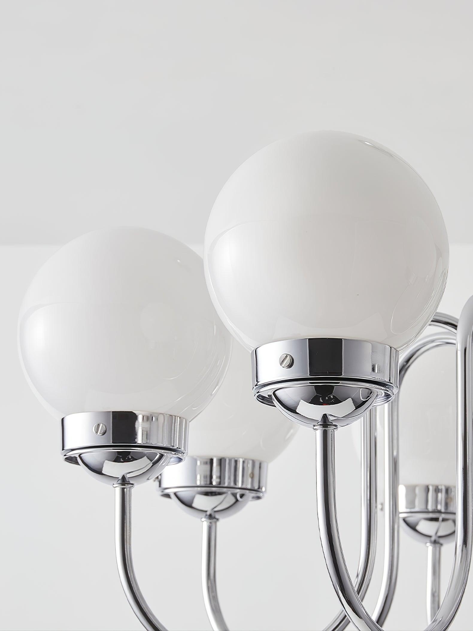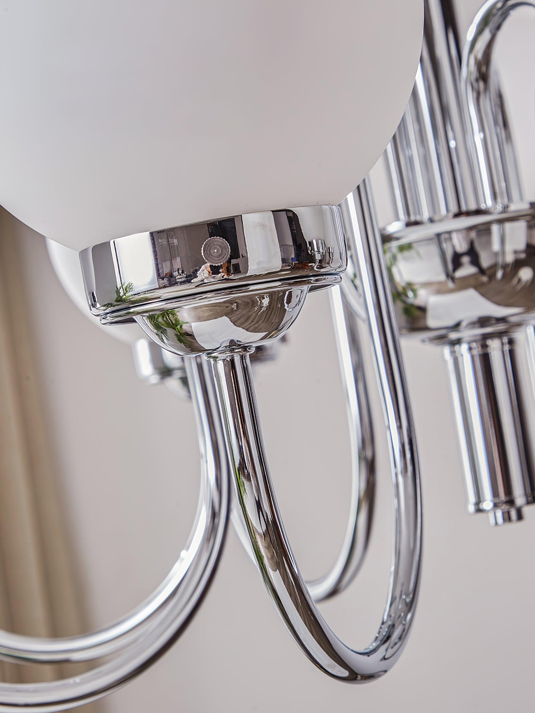 Our Orillia Chandelier makes a beautiful statement in any dining room, entryway, or above a kitchen island. Featuring elegantly curved arms paired with modern globe shades, Orillia is crafted from chrome plating and casts a warm glow.