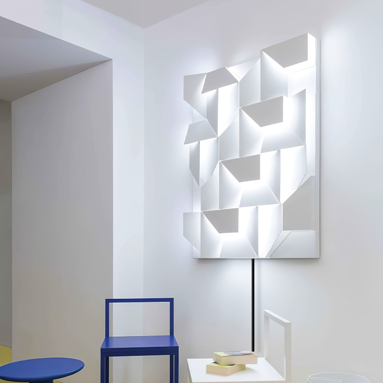 Wall shadows grand sconce series. create unusual luminous sets with LED diffused lighting. Available in different sizes. they are made of laser-cut aluminum and matt white painted.