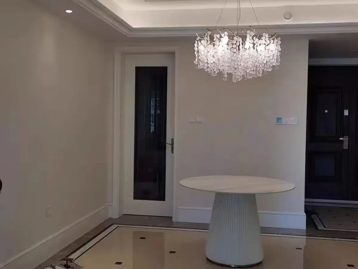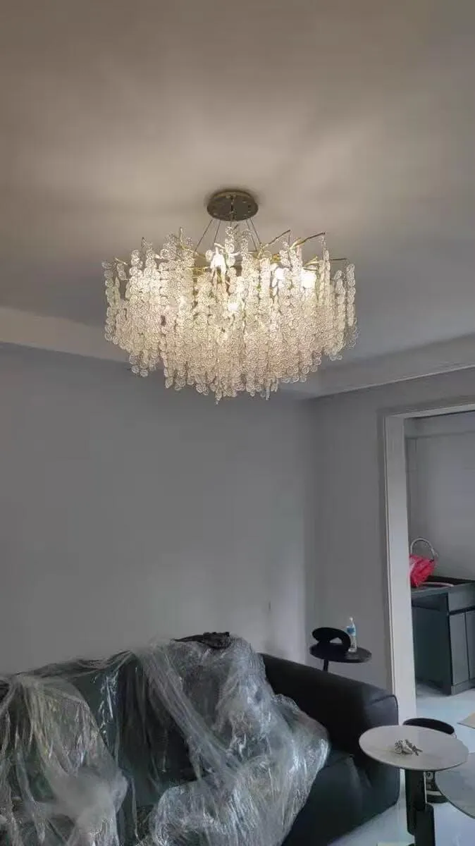 Exactly like the photo, easy to install, crystal pieces are high quality and fast delivery. For the price we paid its so worth it, it is the center piece of our house.